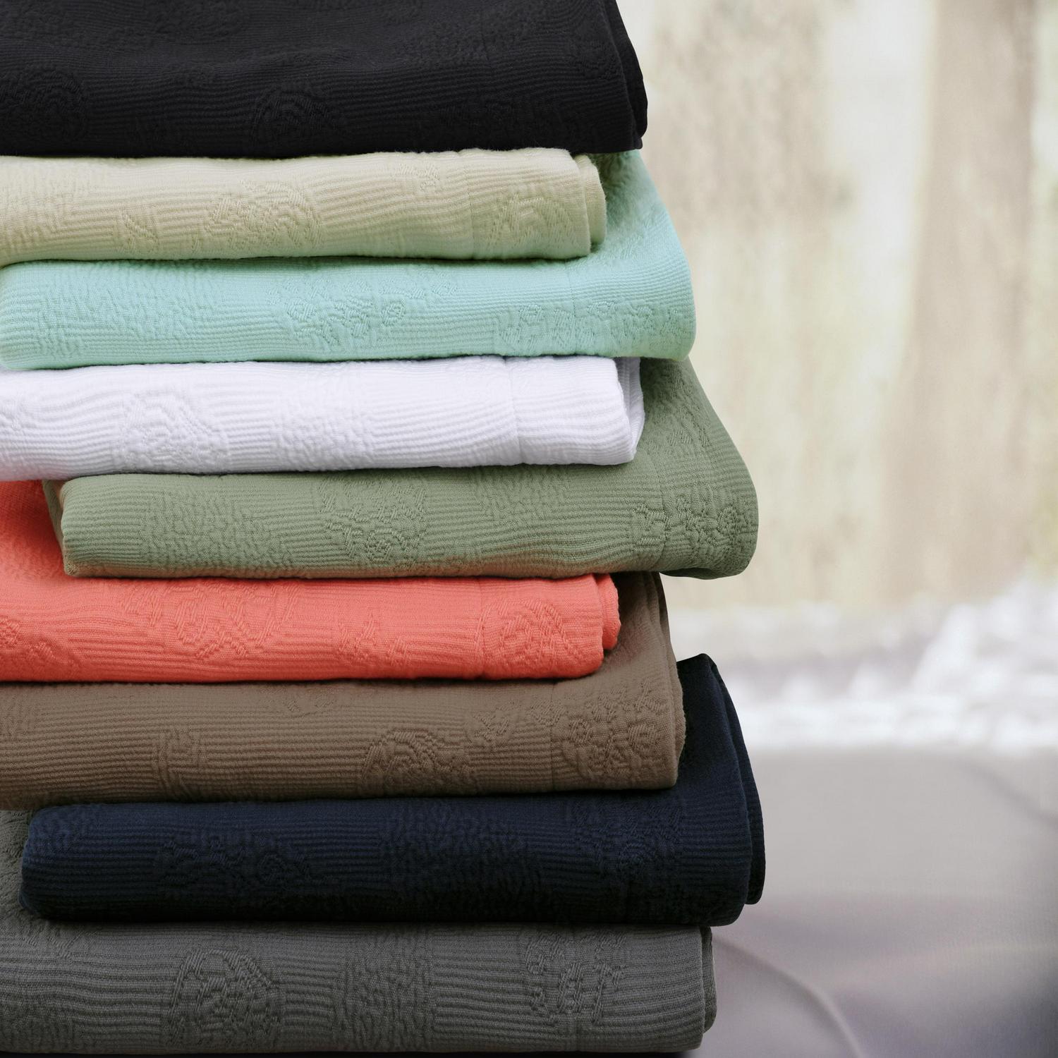 Decorate your bed with the beautiful Laughton Cotton Bedspread Set. Make a statement with your bedding with the textured matelassé paisley pattern that will pair effortlessly with your existing aesthetic. This bedspread is the perfect balance of being lightweight while still providing maximum warmth and comfort and can be used as an added layer to your current bedding ensemble or warm enough to wear on its own. Two coordinating pillow shams (Twin size includes one pillow sham) in the striking paisley print are included in this beautiful set.