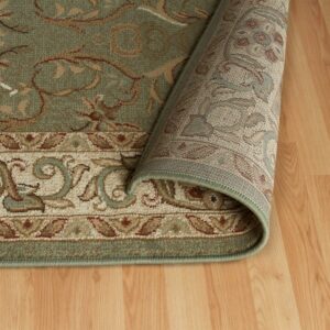 Superior Heritage Oriental Floral Indoor Runner Rug, Green, 2′ 7 x 8′