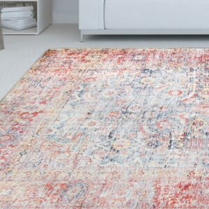 Superior Huda Rustic Oriental Indoor Area Rug, 7’6″ x 9’6″, Ruby Red