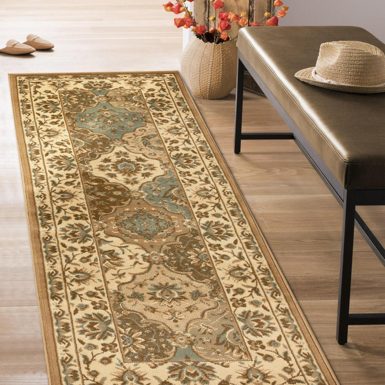 Superior Palmyra Floral Classic Indoor Runner Rug, Beige, 2′ 6″ x 8′