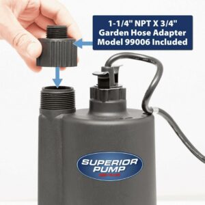 Superior Pump 91330 1/3 HP Thermoplastic Submersible Utility Water Pump with 10-Foot Cord