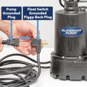 Superior Pump 92341 Cast Iron Utility Water Sump Pump With Vertical Float Switch, 1/3 HP