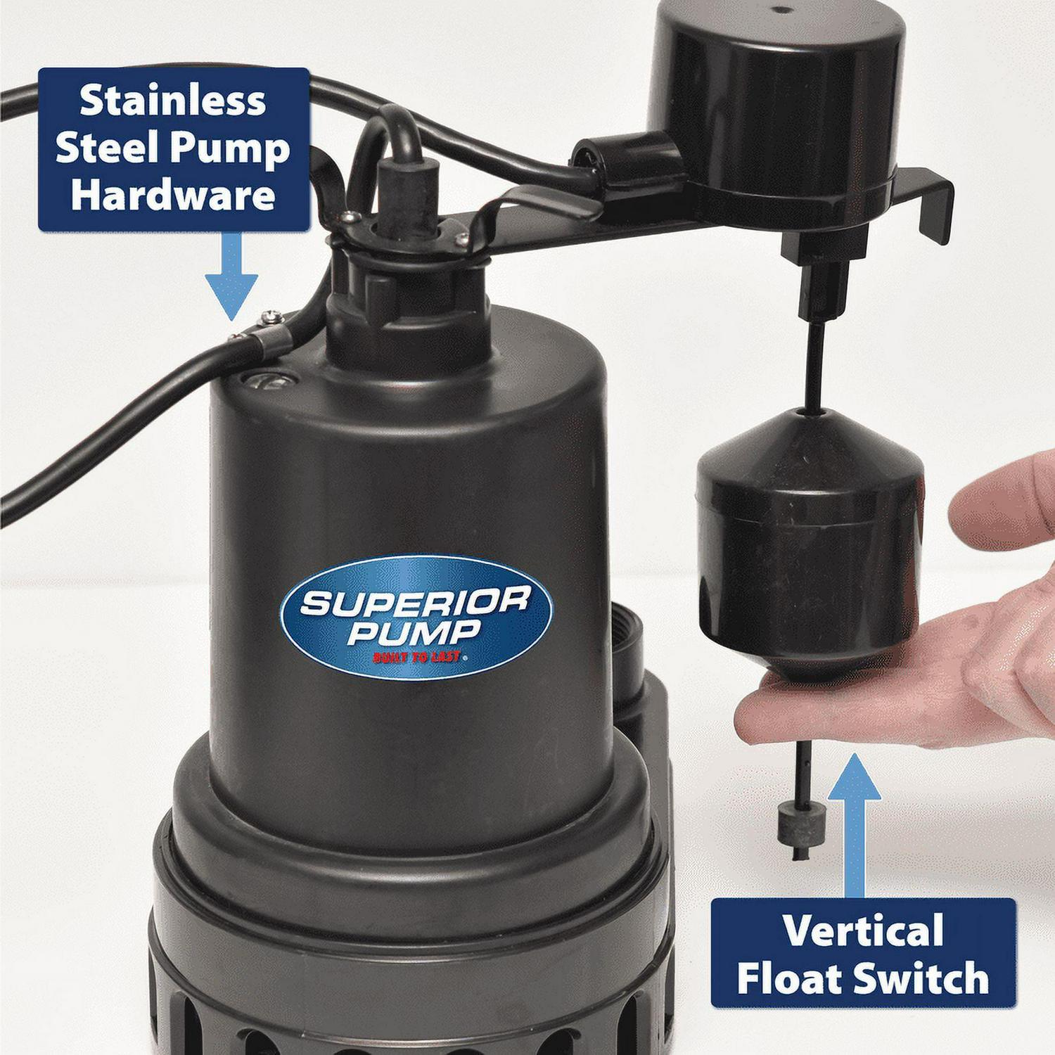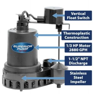 – Superior Pump 1/3 HP Thermoplastic Sump Pump with Vertical Switch: