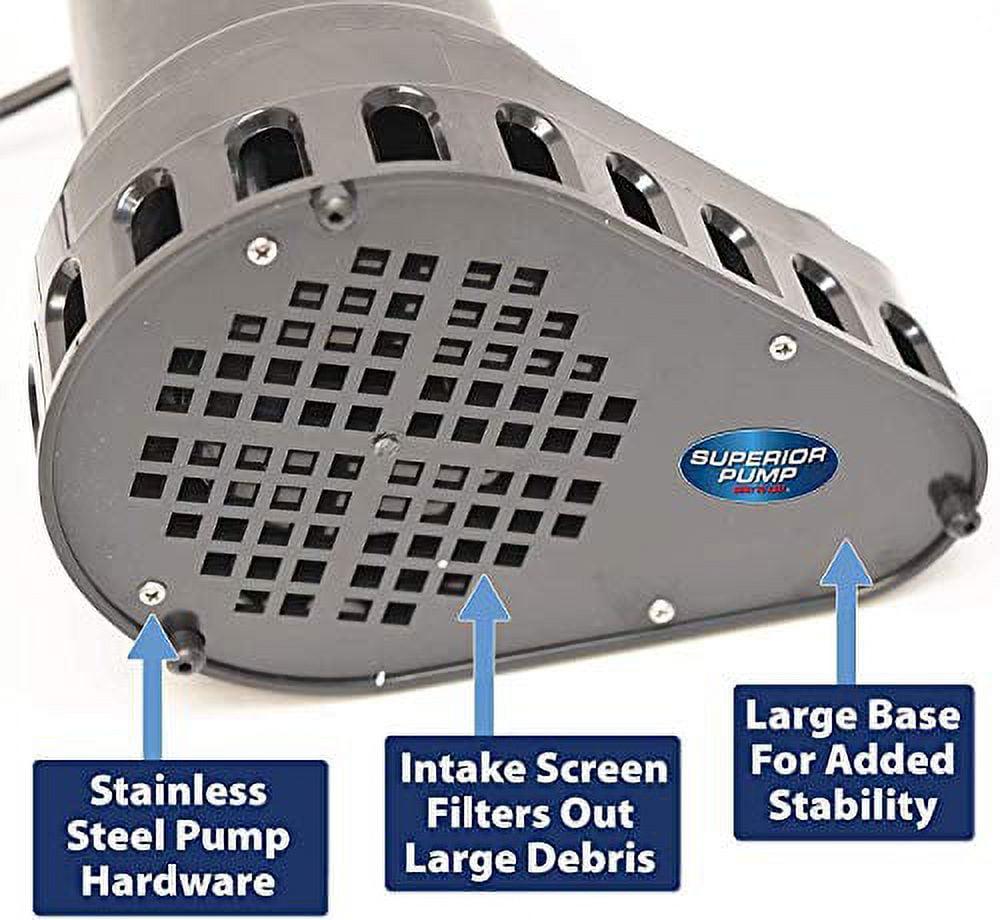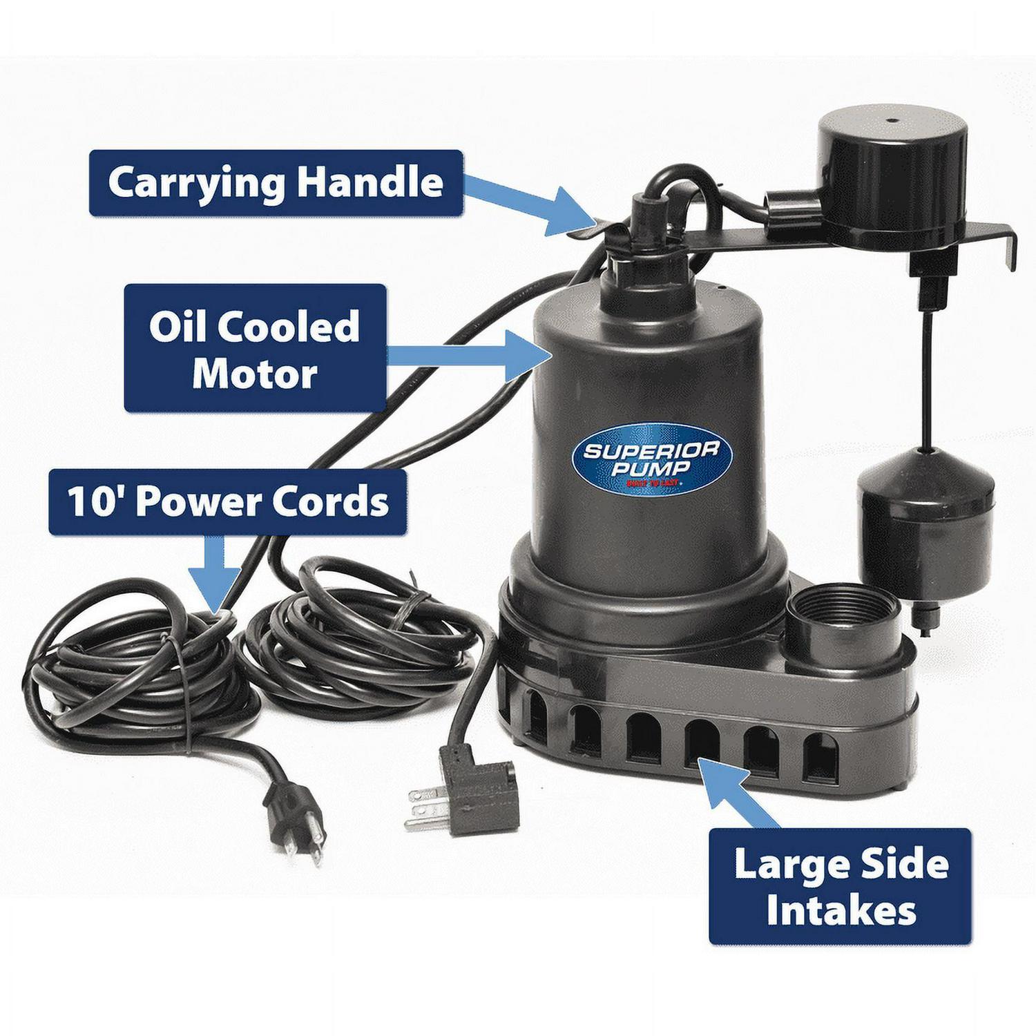 Superior Pump builds pumps that are truly built to last and are 100% factory tested. Superior Pump uses quality components including solid copper motor windings, heavy duty stainless steel jacketed shaft seals, double o-ring seals on motor plate, and electronically controlled split capacitors. Superior Pump model 92372, 1/3 HP submersible sump pump with vertical float switch, will move water up to 2880 gallons per hour. This pump is UL/cu listed and CSA certified and backed by a 1 year warranty.