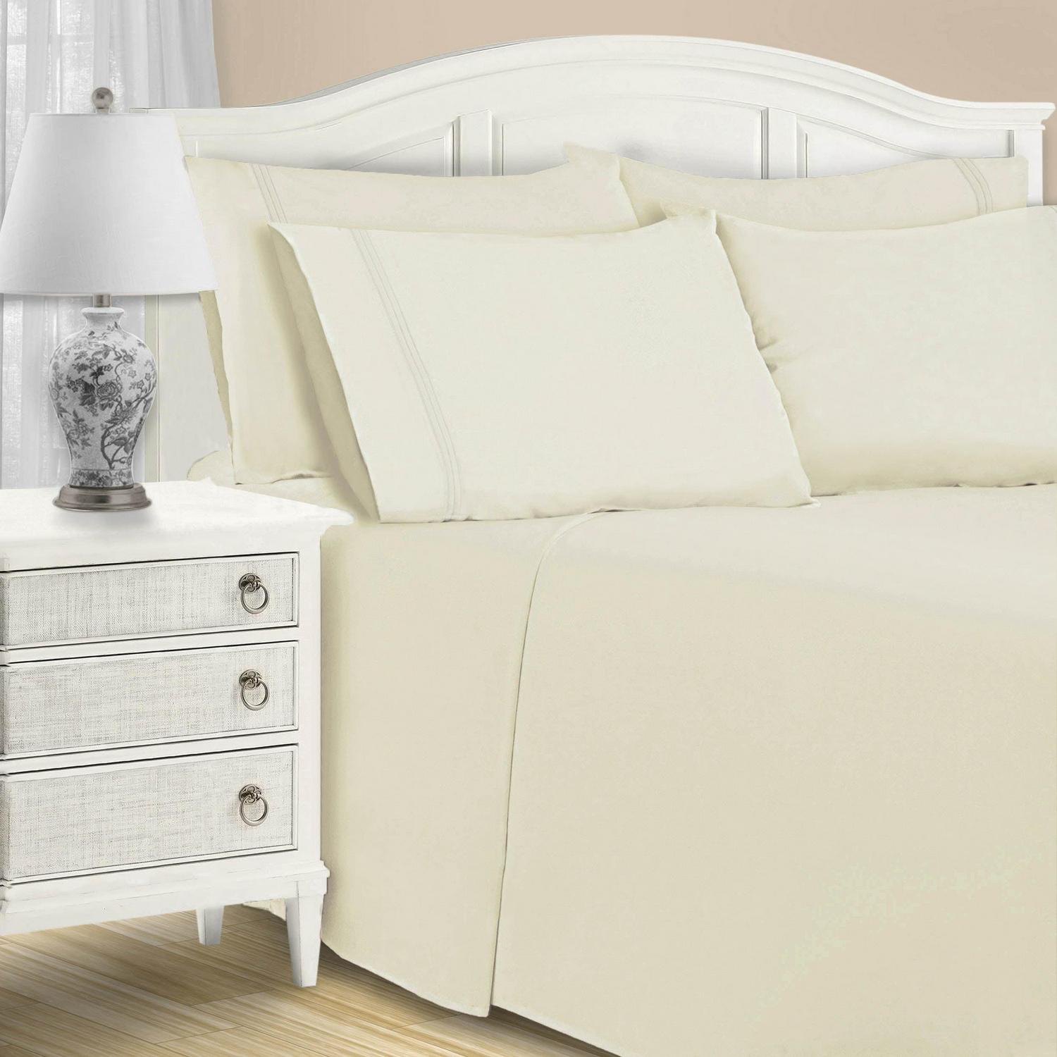 Superior Solid 6-Piece Cotton Blend Ivory Sheet Set, Queen