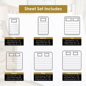 – Set Includes: One flat sheet, one fitted sheet, and four pillowcases