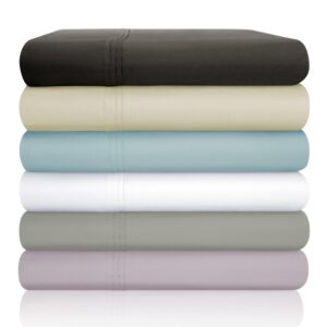 – Special Features: Matching pillowcase included for a fully dressed bed; Two pintuck hem stitch detail; For all sizes, this set includes an oversized deep pocket fitted sheet; All around elastic band stretches to fit mattresses 15 inches to 18 inches thick, Elastic band is 1 inch thick