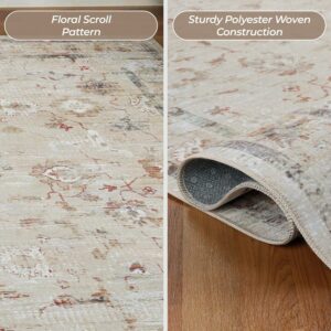 Superior Swan Traditional Washable Area Rug, 7′ x 10′, Cream