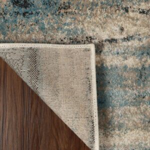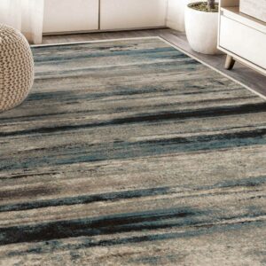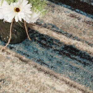 Superior Taia Striped Damask Indoor Area Rug, 8′ x 10′, Cream/ Blue