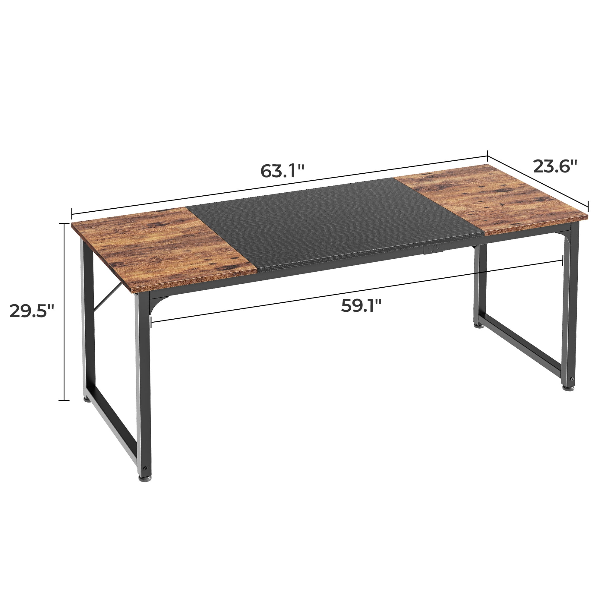 SUPERJARE 62″ Computer Desk, PC Writing Study Table with Metal Frame, Modern Simple Office Desk Workstation for Bedroom Living Room in Rustic Brown and Black