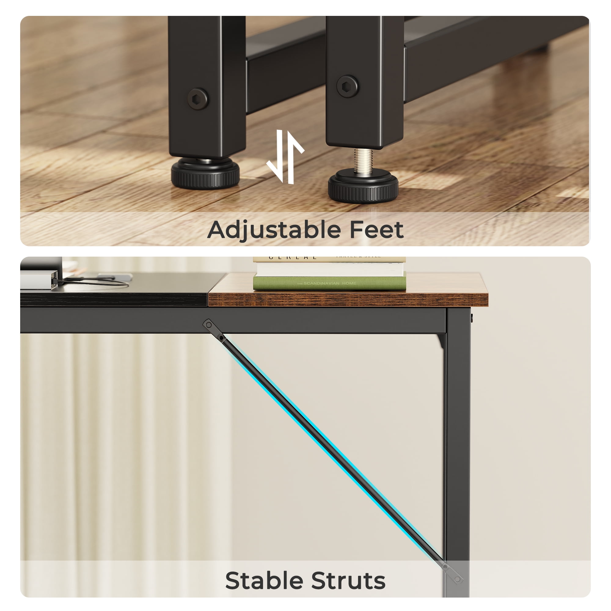 Set up your new workspace or utilize your limited space perfectly with our storage computer desk. The office desk with a spacious desktop offers ample room for your office items in your study, kid’s room, or home office. With generous storage, it comfortably accommodates your computer, calendar, lamp, and other essentials, leaving plenty of space to savor a cup of coffee as you work. Whether need a large office desk, a compact bedroom workspace, a gaming setup, or a study room for your children, this desk covers all your needs. Constructed from durable particleboard and reinforced with thick steel tubes, this desk boasts a stable and sturdy structure that ensures longevity. Additional reinforcement struts beneath the tabletop enhance stability, making it ideal for work and gaming enthusiasts.