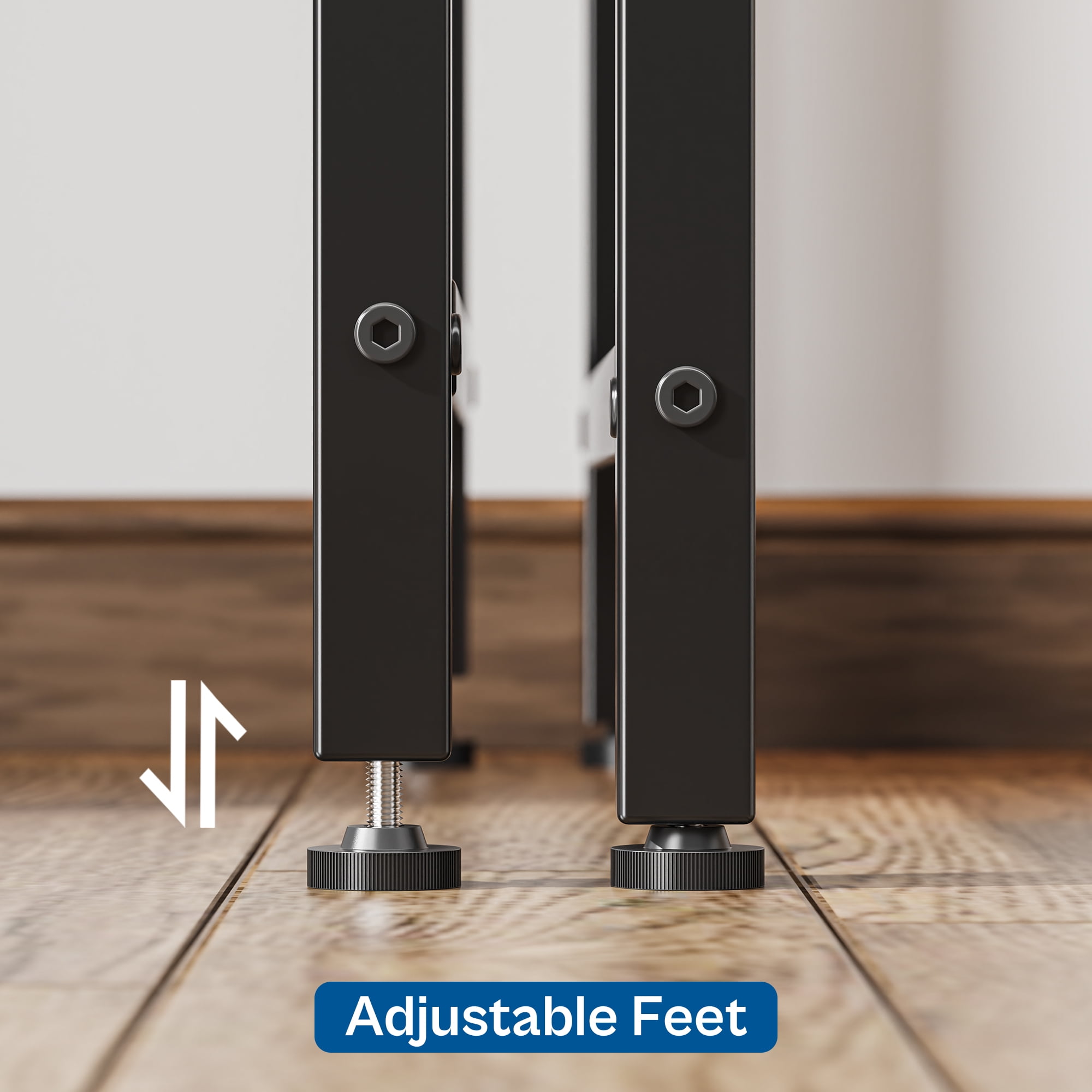 Enjoy multiple functions ans style with our Led computer desk. With LED light strips, you can create an immersive working or gaming ambiance, choosing from 20 vibrant colors, 22 dynamic modes, and 5 brightness levels. Perfect for gaming setups, home offices, or bedrooms, this desk sets the mood effortlessly. Additionally, the monitor stand features 4 AC outlets and 2 USB ports on it, offering convenient charging for your devices while keeping your eye lines elevated to prevent neck and back strains. This considerate design makes it ideal for long hours of work or gaming. Moreover, the desk comes with drawers that can be installed on either side, providing ample storage for books, office essentials, or gaming devices. Its compact size makes it suitable for various uses, from a kid’s study desk to a small computer desk for tight spaces. With solid construction and easy assembly, this home office desk combines durability and convenience.