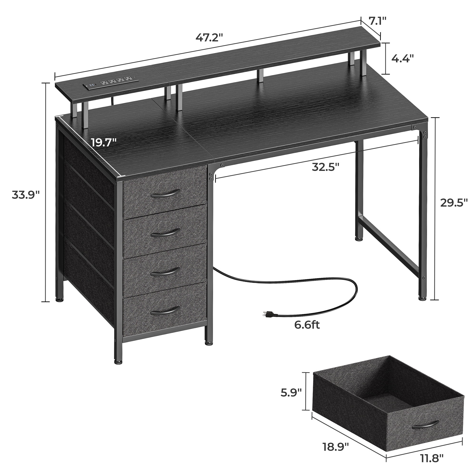 SUPERJARE Desk with Drawers, 46″ Gaming Desk with LED Lights, Computer Desk Small Office Desk with Outlets, Writing Desk for Bedroom in Pure Black