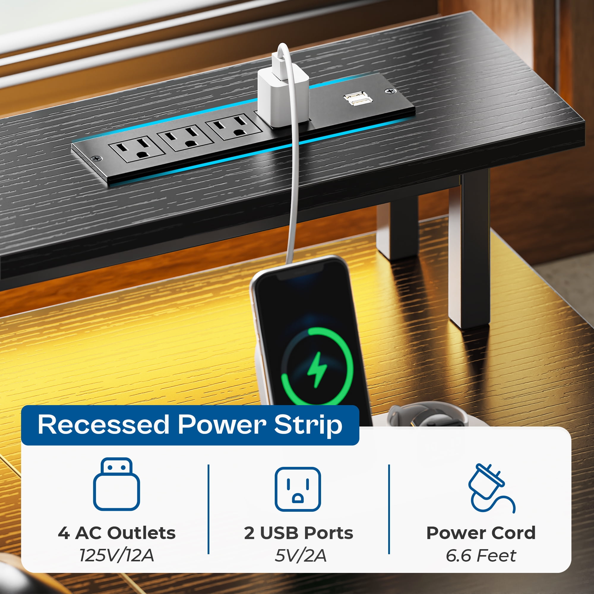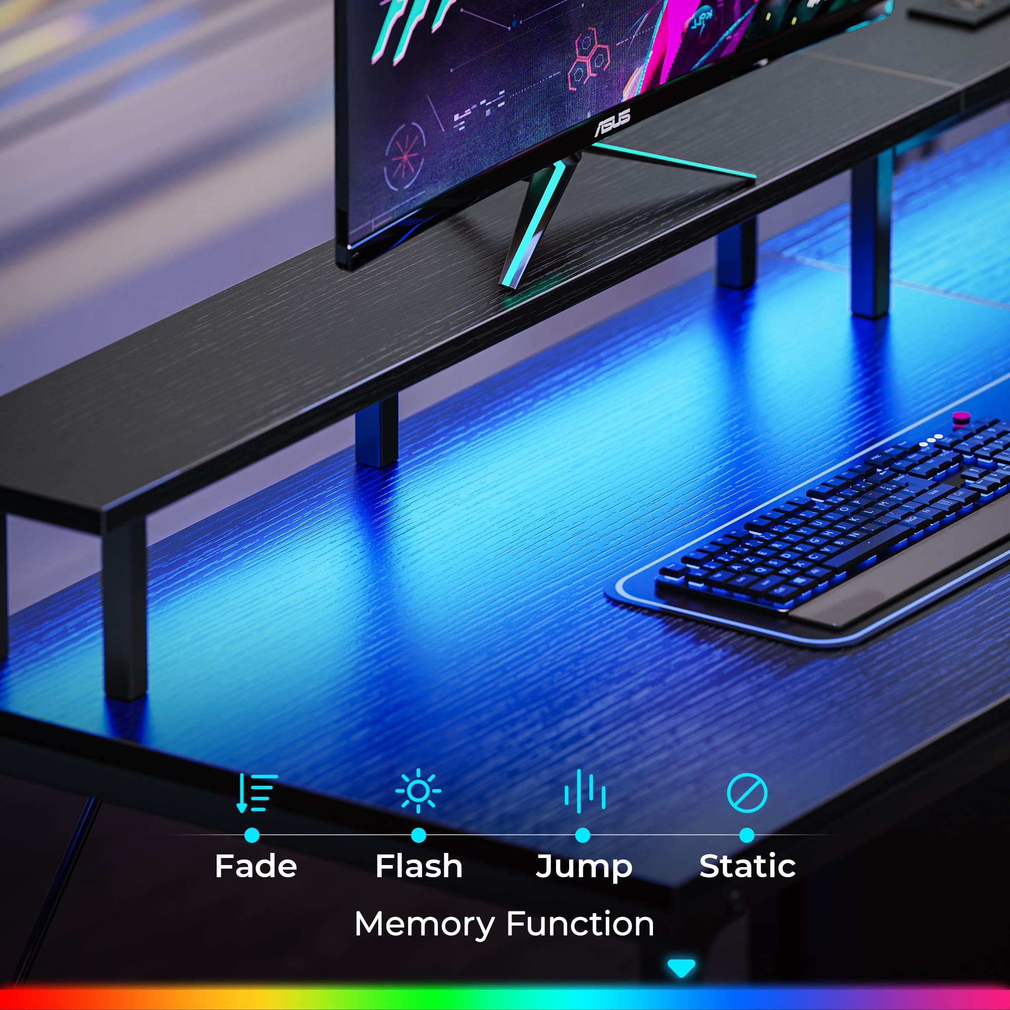 Desk with LED Lights: 20 changeable colours, 22 dynamic modes of the LED light strip, you can choose the lights you like to fit your home space Outlets and USB ports: Charge your devices whenever the low battery notification occurs Ample Storage Solutions: This computer desk allows for flexible drawer installation. Drawers can be installed in different forms and add more storage space Many Use Occasions: Use as a writing desk, study desk, or gaming desk Durability for Long-Term Use: Sturdy steel & premium P2 Particle Board