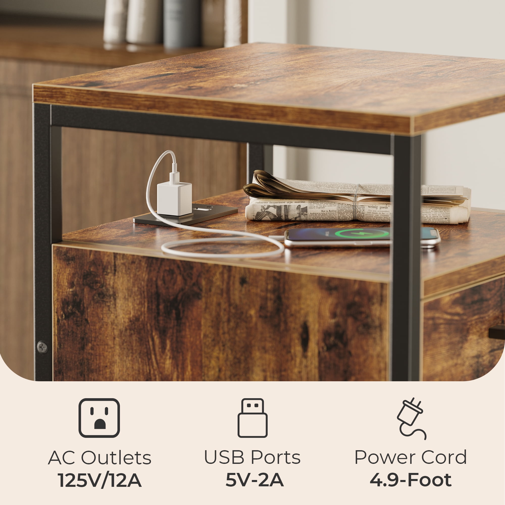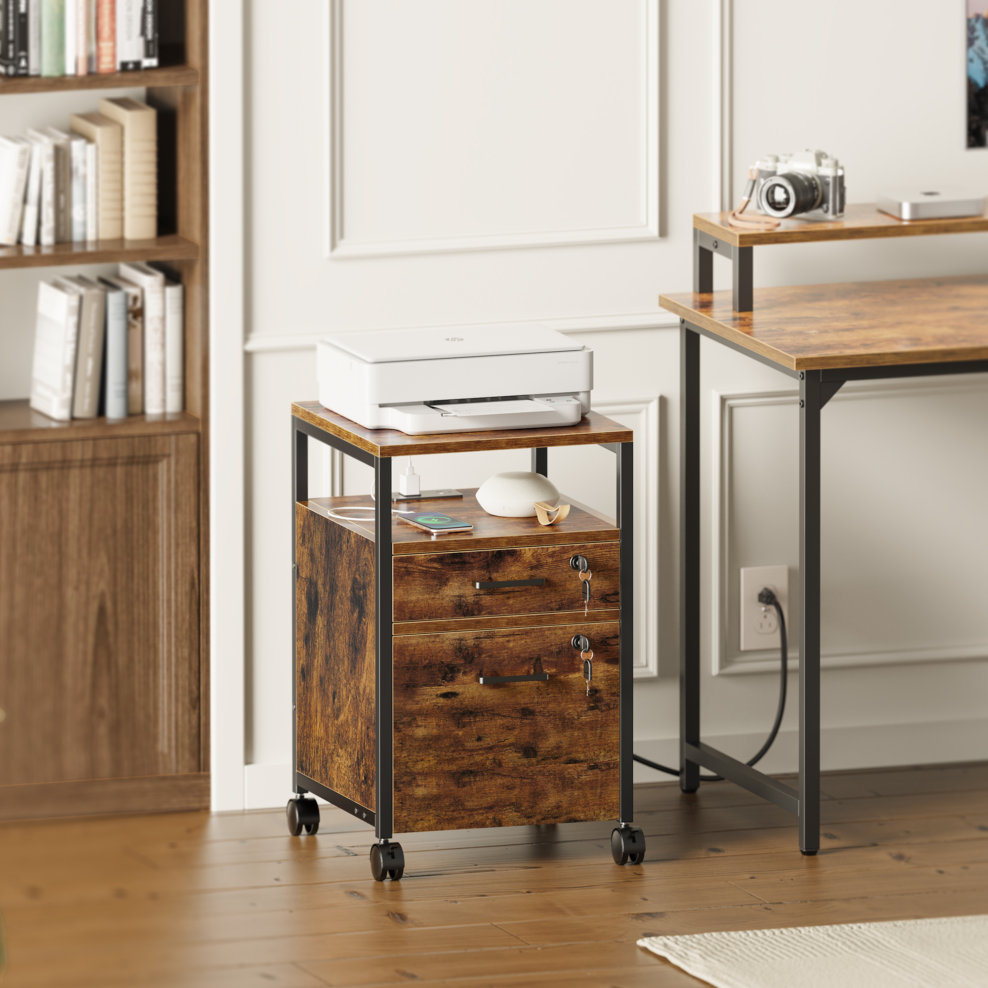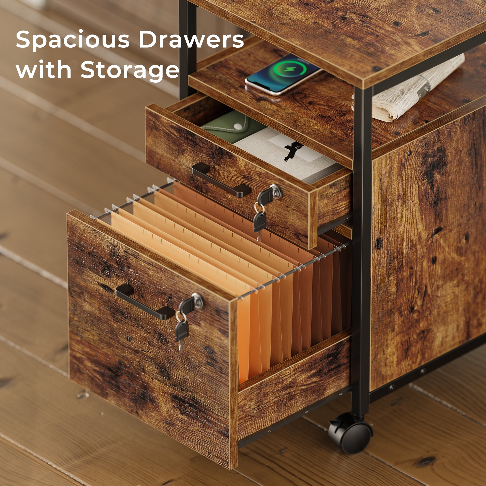 SUPERJARE File Cabinet with Lock & Charging Station, Mobile File Cabinet with 2 Drawers, Rolling Filing Cabinet with Wheels, Office File Cabinet, A4/Letter Size Files Under Desk, Rustic Brown