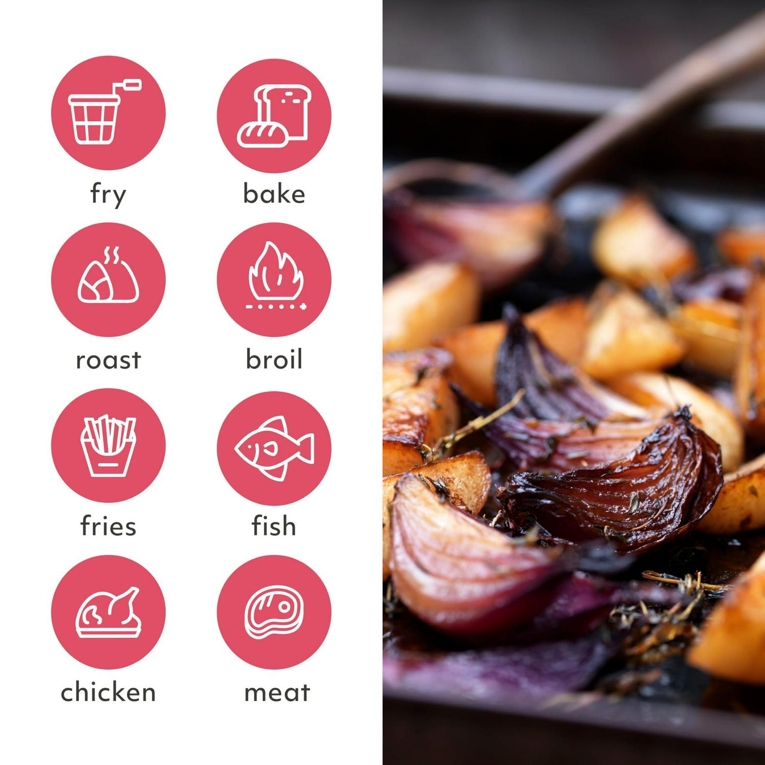 – VERSATILE 5-IN-1 FUNCTIONALITY: Seamlessly switch between Air Fry, Bake, Roast, Broil, and Reheat functions to tackle a wide range of cooking tasks with ease.