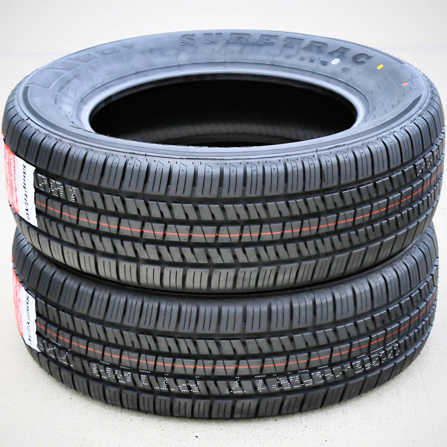 Suretrac Comfortride OVERVIEW The Suretrac Comfortride is a touring, all season tire made for passenger vehicles and SUVs. The tread pattern improves its controllability. The tread design closely follows the road, maintaining the tire’s constant contact to improve steering responsiveness and driving stability. In other words, the steering is faster and more precise in its response to the driver’s commands, while the structure is secured against the driving pressure affecting the model. The shoulder tread block pattern upgrades the cornering capability, while at the same time enhancing maneuvering. This model also enhances all weather performance. The tread design and the all season compound boost the dry, wet, and winter road grip. The asymmetric tread design closely follows the road surface all the time, while the compound maintains rubber flexibility throughout versatile temperatures. At the same time, deep circumferential grooves disperse water and slush from below the footprint, preventing hydroplaning. These elements work together and promote a safe driving performance throughout the year. The Suretrac Comfortride provides a quiet and comfortable driving experience. The asymmetric tread pattern, the durable compound, and their close road contact offer a noise- and vibration-free drive. This tread design channels airwaves through the footprint, without letting them come into contact with the tread elements. This avoids road noise from generating while the tires are in motion. On the other hand, the rubber compound and the close road contact absorb the shock of driving. As a result, they minimize the vibrations felt by the passengers. This combination provides an enjoyable driving performance. Manufacturers recommend changing tires every 10 years. As long as tires are properly stored before they are sold, the year of their manufacture will not shorten their service life.