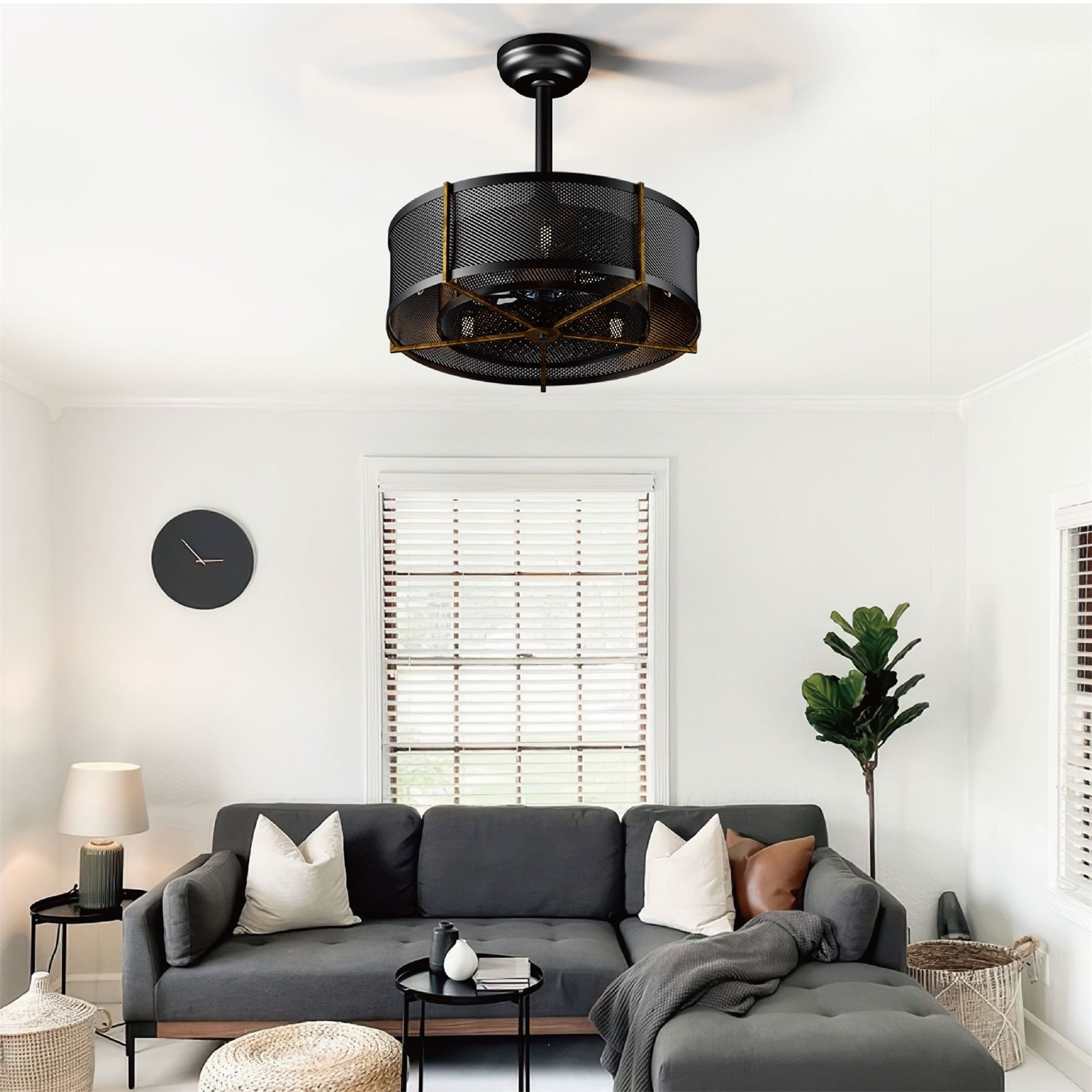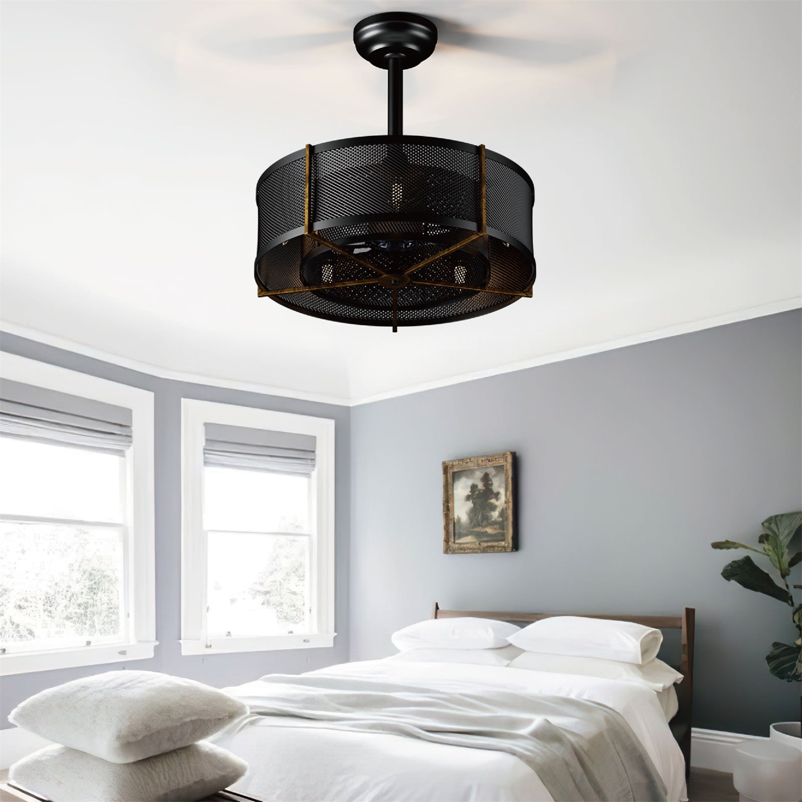 Surnie Ceiling Fans with Lights, Mesh Caged Ceiling Fan with Light, Black Ceiling Fan with Light for Bedroom, Living Room