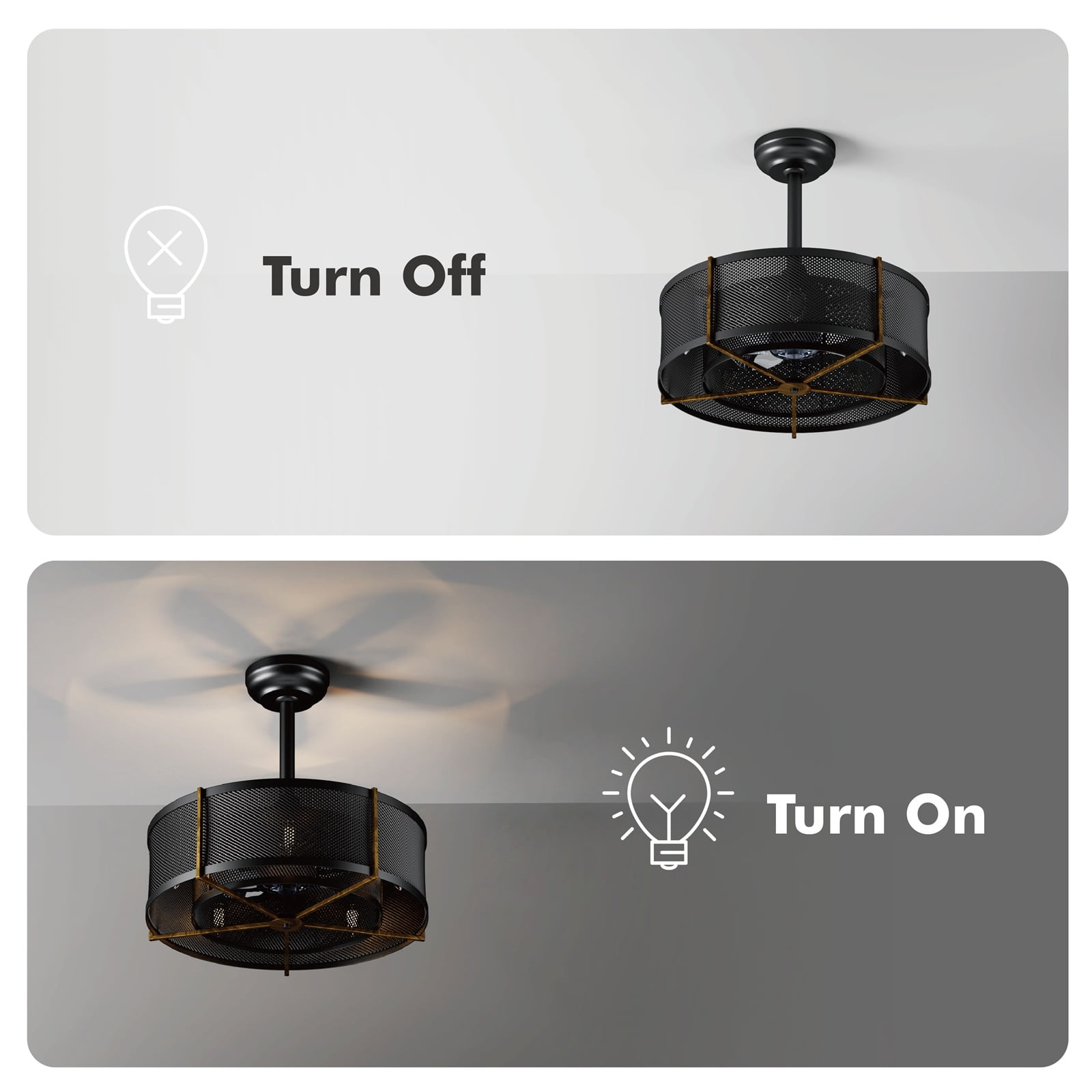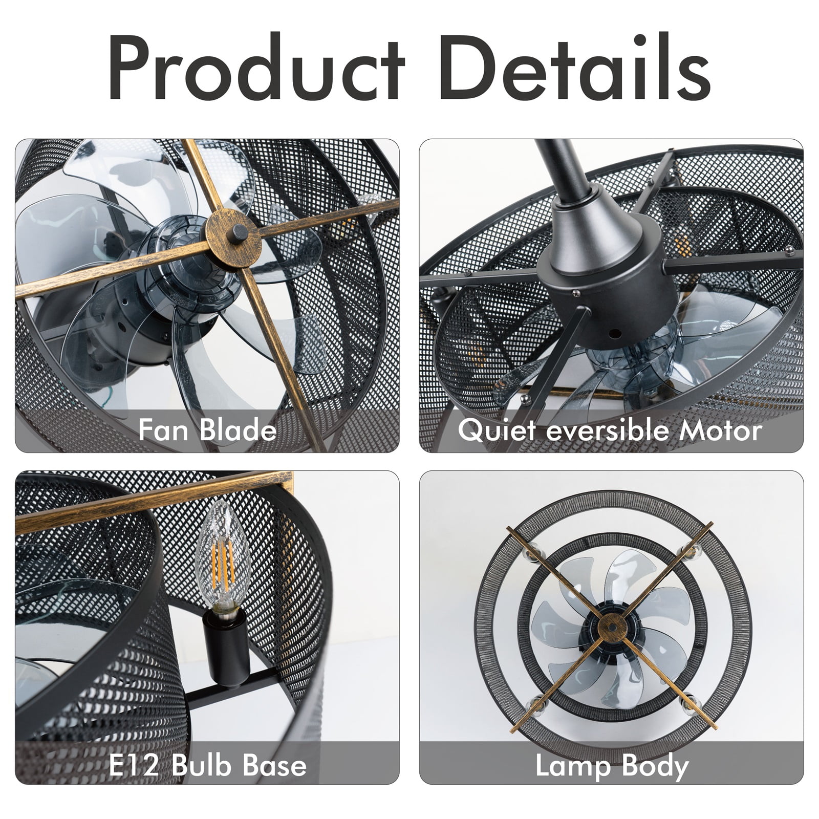 Unique Design: This industrial ceiling fan light is a combination of ceiling fan and lamp, it has a steel cage-shaped shade, which is novel, practical and decorative. The industrial ceiling fan light is ideal for living rooms and farmhouses