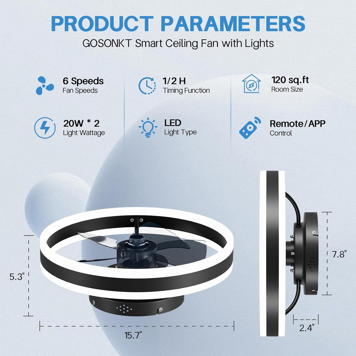 𝙎𝙡𝙚𝙚𝙠 & 𝙎𝙖𝙛𝙚 𝘿𝙚𝙨𝙞𝙜𝙣: Uniquely weighing just 4 pounds with 5 ABS blades, this low profile fan light is safer and lighter than traditional models. Its robust airflow comes from a smooth and quiet AC motor, ensuring exceptional bedroom ceiling fan performance. Equipped with a gentle, glare-free 20W dual-layer LED light source, it cares for your eye health. 𝙑𝙚𝙧𝙨𝙖𝙩𝙞𝙡𝙚 𝙍𝙚𝙢𝙤𝙩𝙚 & 𝘼𝙥𝙥 𝘾𝙤𝙣𝙩𝙧𝙤𝙡: This fan-light includes a high-sensitivity remote control for easy adjustments, and for ultimate convenience, it’s also compatible with a smart app. Seamlessly control the dimming, three-color temperature adjustments, and the 6-speed airflow options. Activate the timer function (1/2 hour) and night mode, all conveniently at your fingertips. The fan-light even remembers your preferred settings after turning off the lights. 𝙔𝙚𝙖𝙧-𝙍𝙤𝙪𝙣𝙙 𝘾𝙤𝙢𝙛𝙤𝙧𝙩: Beyond its cooling breeze during the summer, this ceiling fan’s reverse mode keeps the air circulating in winter, maintaining a comfortable indoor environment. With a 4-hour sleep timer, you’re ensured a good night’s rest. 𝙈𝙤𝙙𝙚𝙧𝙣 𝘿𝙚𝙨𝙞𝙜𝙣 & 𝙀𝙖𝙨𝙮 𝙎𝙚𝙩𝙪𝙥: Embrace modernity with this fan’s contemporary design that perfectly complements small spaces. Its sleek look is accentuated by the high-transparency acrylic light fixture, elevating your home’s style. The copper motor excels in heat dissipation, operates silently, and boasts energy efficiency. Enjoy an easy installation process with pre-assembled components. Simply connect the wires and ceiling mount, and you’re good to go. 𝟑𝟎-𝘿𝙖𝙮 𝙒𝙤𝙧𝙧𝙮-𝙁𝙧𝙚𝙚 𝘼𝙨𝙨𝙪𝙧𝙖𝙣𝙘𝙚: Purchase with confidence knowing that you’re covered by a 30-day worry-free replacement or return guarantee. We’re committed to your satisfaction, and your investment is protected by a 100% refund service. Elevate your room’s modern ambiance with the perfect fusion of comfort, style, and technology.