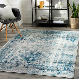 Surya Monte Carlo MNC-2313 94×122 Rectangle Fabric Area Rug in Blue/Light Gray