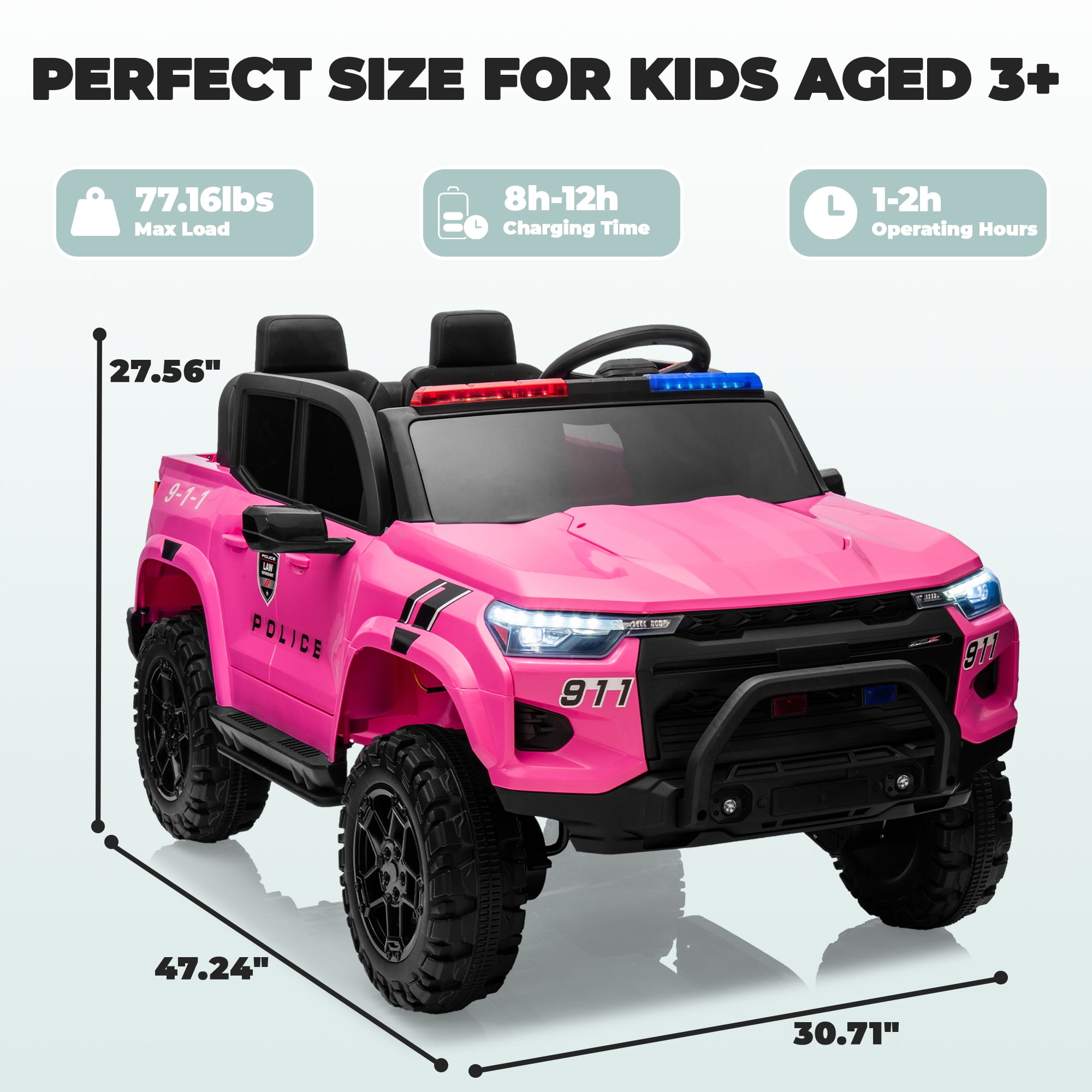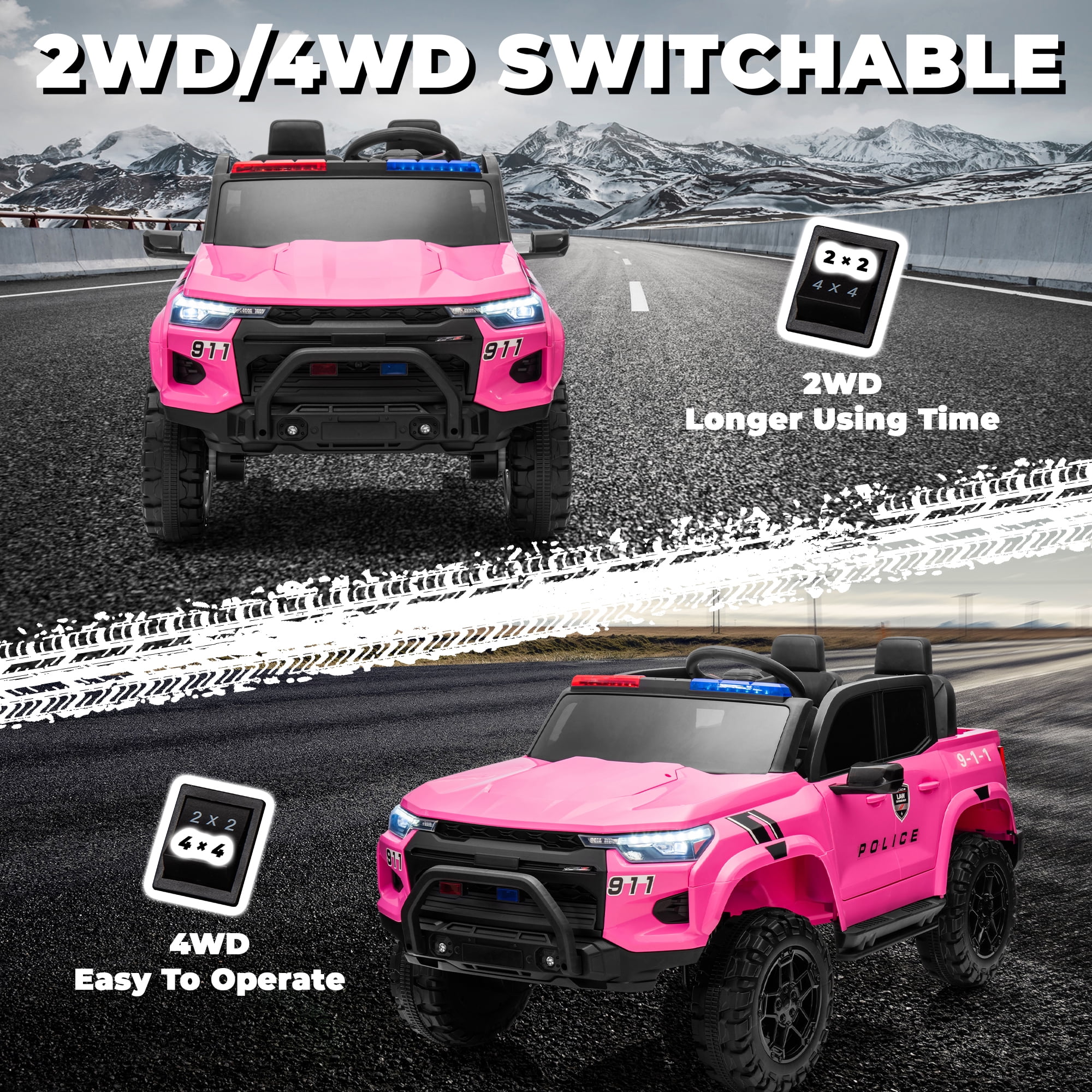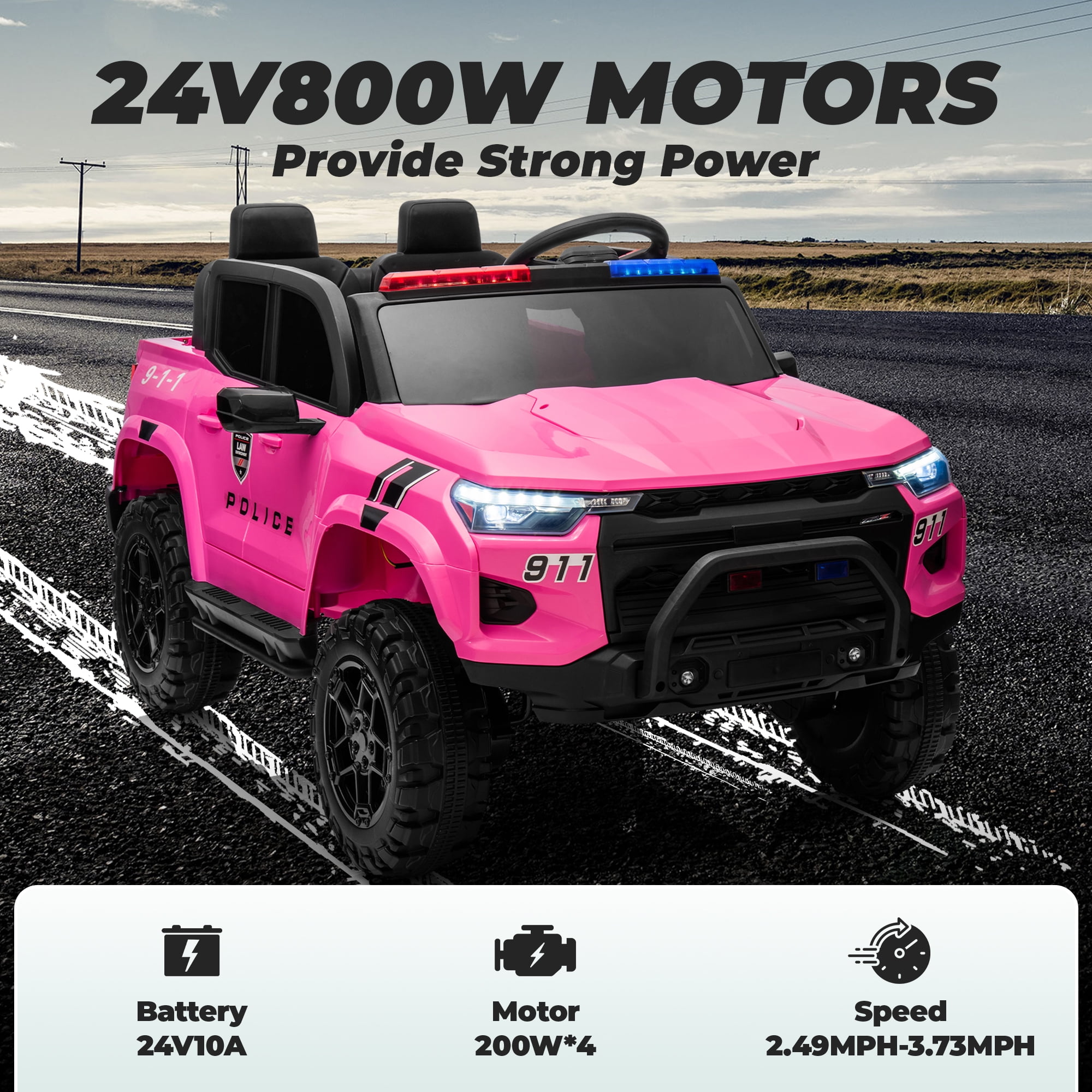 SUSIELADY 24V Kids Ride on Police Car, 2-Seater Kids Ride on Pickup, 4WD 800W Motors, with Remote Control, Bluetooth, LED Lights, Spring Suspension, for Kids Aged 3+, Rose Red