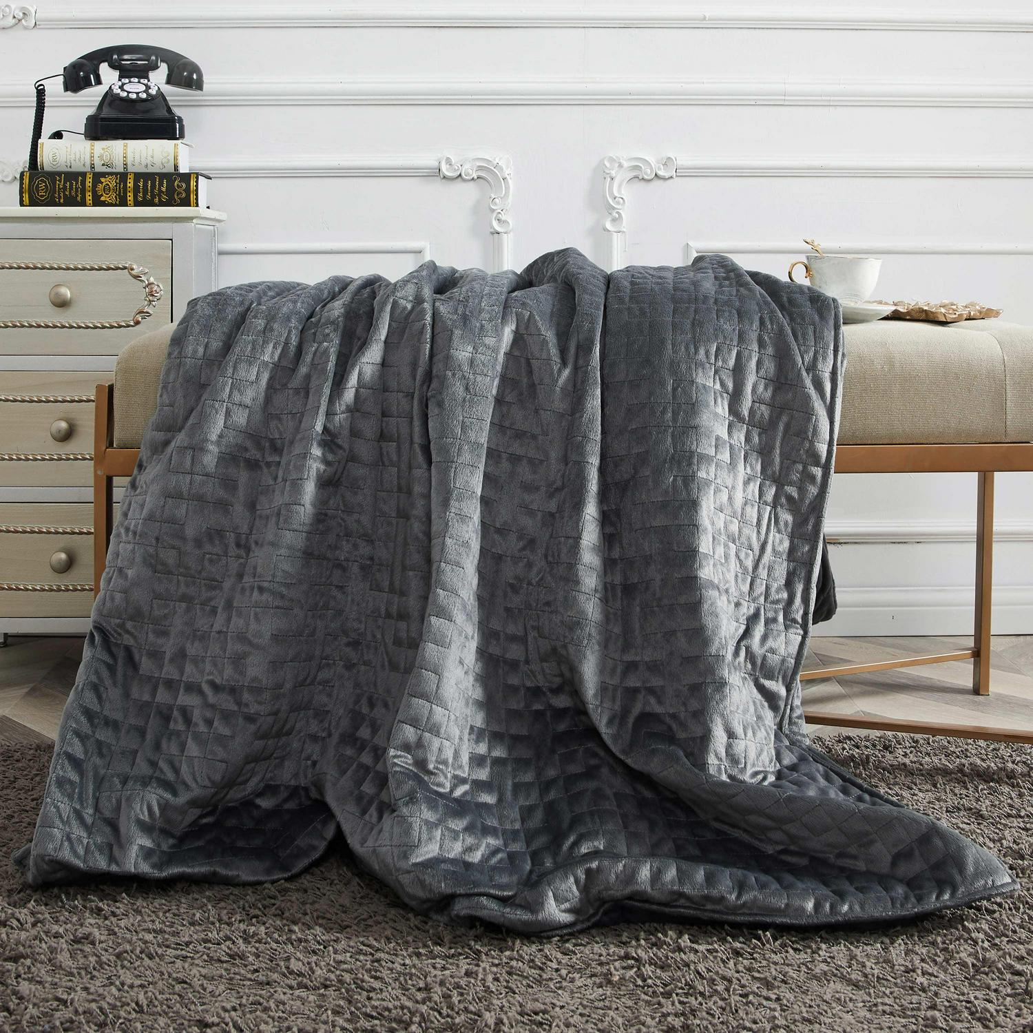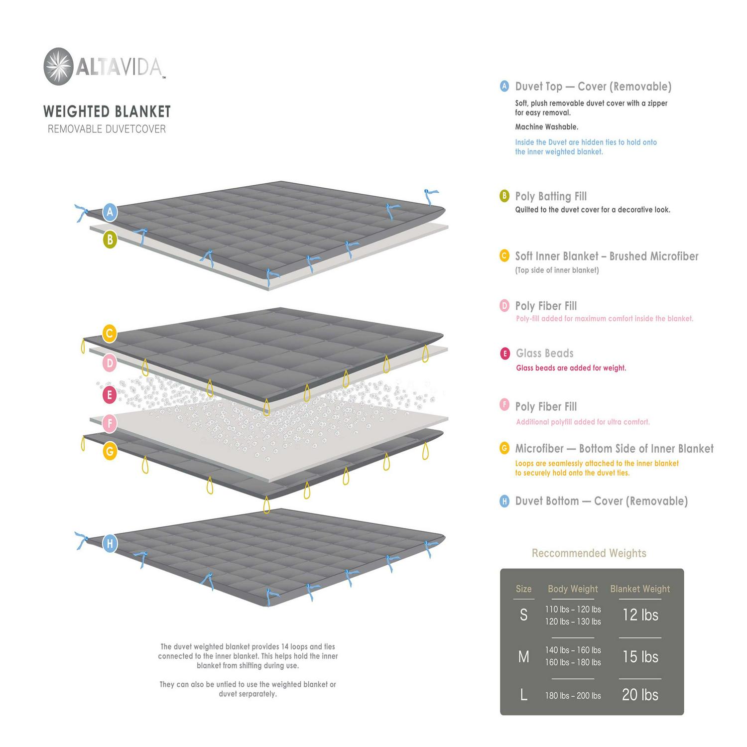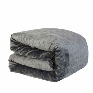 Experience the comfort and relaxation of snuggling up with a weighted blanket! Used by occupational therapists for years, weighted blankets provide deep pressure stimulation to help relax your body and simulate the feeling of being held or hugged in order to encourage deep, healthy, more restful sleep. Choosing the right weight in a weighted blanket is important. It s recommended to select a blanket that is about 10% of your body weight. The 15 lb. blanket is suitable for adults weighing 140-180 lbs. and fits twin size and full size beds. The 20 lb. blanket is suitable for adults weighing 180-210 lbs. Our premium blanket uses glass micro-beads sewn into small, quilted panels to evenly distribute the weight of the blanket and prevent bunching, while our superior sewing technology creates a blanket that is durable and comfortable. This premium weighted blanket comes with a removable, machine washable duvet cover to make care and cleaning a snap. Simply unzip the plush velvet covering and wash on the gentle cycle. A weighted blanket makes a useful, calming gift for adults and teens who may have difficulty sleeping due to sensory processing issues or physical discomfort. Spot clean or dry clean weighted blanket when necessary. Measures 48″ x 72″. Not for use on infants and toddlers.