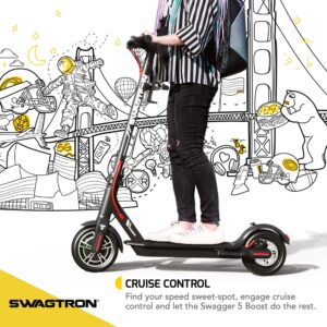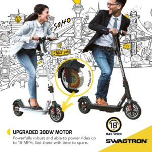 Swagtron Adult Electric Scooter Swagger 5 Boost, 320 lb Weight Limit, 8.5 Inch No-flat Tires, 300W Motor, Quick Folding, 18 Mph, UL 2272 Certified, Long Range
