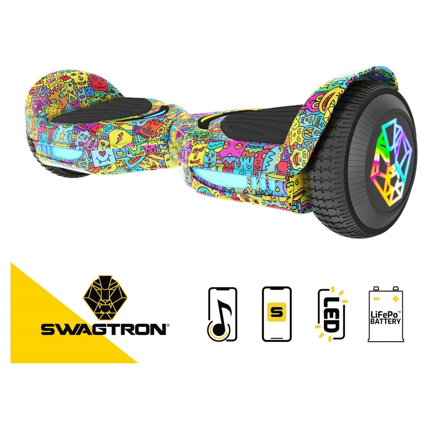 Swagtron Multicolor SwagBOARD EVO Freestyle Hoverboard Bluetooth Speaker Light-Up Wheels, 7 MPH Max Speed