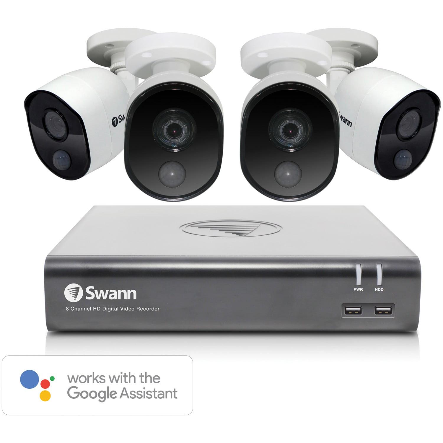 Swann SWDVK-845804V-US 8-Channel 1080p 1TB DVR with 4 Cameras and Google Assistant