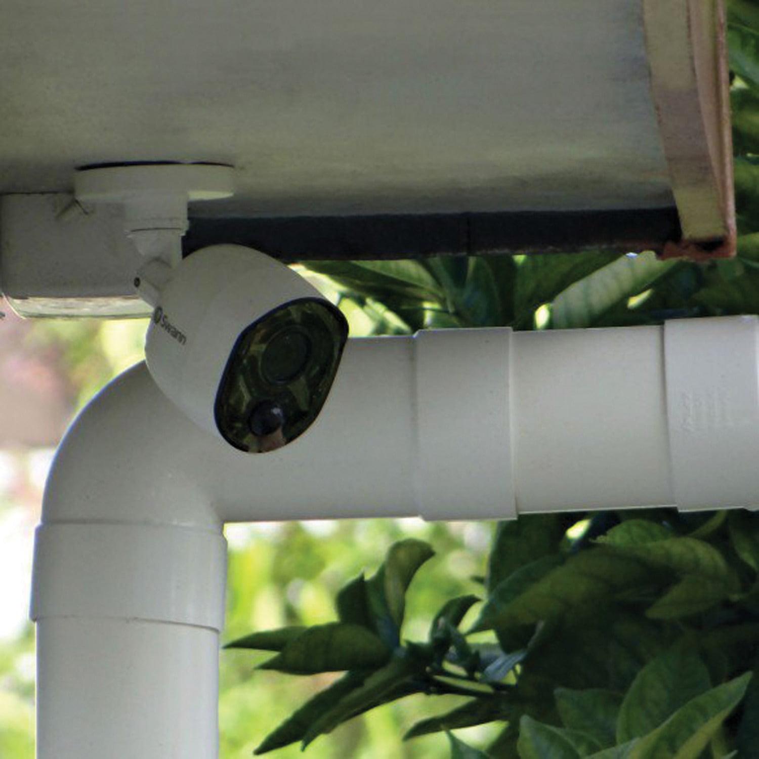 – Includes four 1080p True Detect cameras, four 60ft BNC cables, Ethernet cable, HDMI cable, power adapter & splitter, mouse, mounting screws & plugs, quick-start guide & theft-deterrent stickers