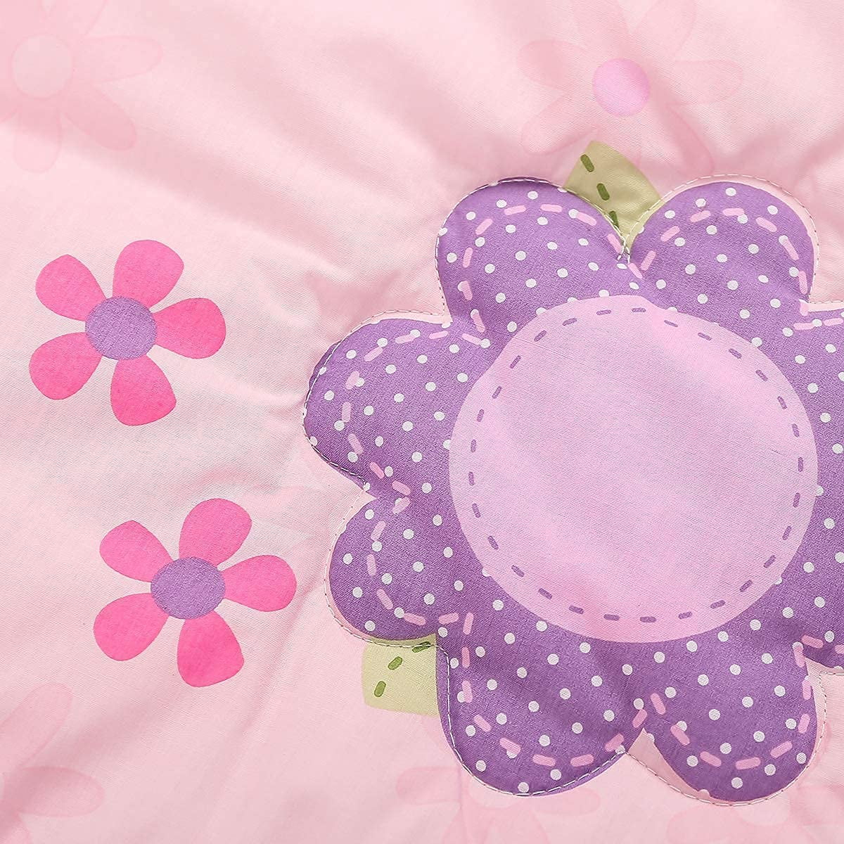 MATERIAL-The organic crib bedding set made of cotton is in line with OEKO-TEX I infant and child standards to care for . The comforter is warm, breathable, lightweight and ultra soft, comfier your baby all year’s round.High quality material features fade, shrink, pilling and stains resistant. 2 pack printed fitted crib sheets silky soft and include all around elastic for a safe and snug fit, fit for standard crib & toddler bed. VIVID DESIGN – the 4-piece crib set with the theme of pink butterflies and sunflowers brings the beauty of nature to life. In the crib set, purple and light yellow butterflies are flying in flowers. It is fun to open up the baby’s imagination in dreams and decorate the room. The hand-sewn stitches make the butterflies and flowers look more three-dimensional, baby will enjoy playing and sleeping on the bed with the gender pink crib kit. 4 PIECES & SIZE – The portable crib bedding set is perfect for any standard crib & toddler mattress (52 x 28 in).4-pcs crib comforter set includes : 1 crib comforter(33”×42”), 1 crib skirt(28”×52”+8”), 2 fitted crib sheet with 360° elastic band around the bottom edge (28 ”×52”×10”).One buy to get all your needs for a cozy and stylish nursery room. HIGH QUALITY & BEST GIFT – Our natural crib bedding set will get softer, not fade and shrink after machine or hand washing. The animal crib set is Best Baby Shower Gift for crib bedding sets for boys and girls on Baby Showers Day,Birthday,Christmas,Thanksgiving day. WASH – The last thing busy parents need are difficult things to wash, but this crib bedding set is not only easy to clean but machine washable. Simply toss everything else into the washer on the gentle cycle in cold water.
