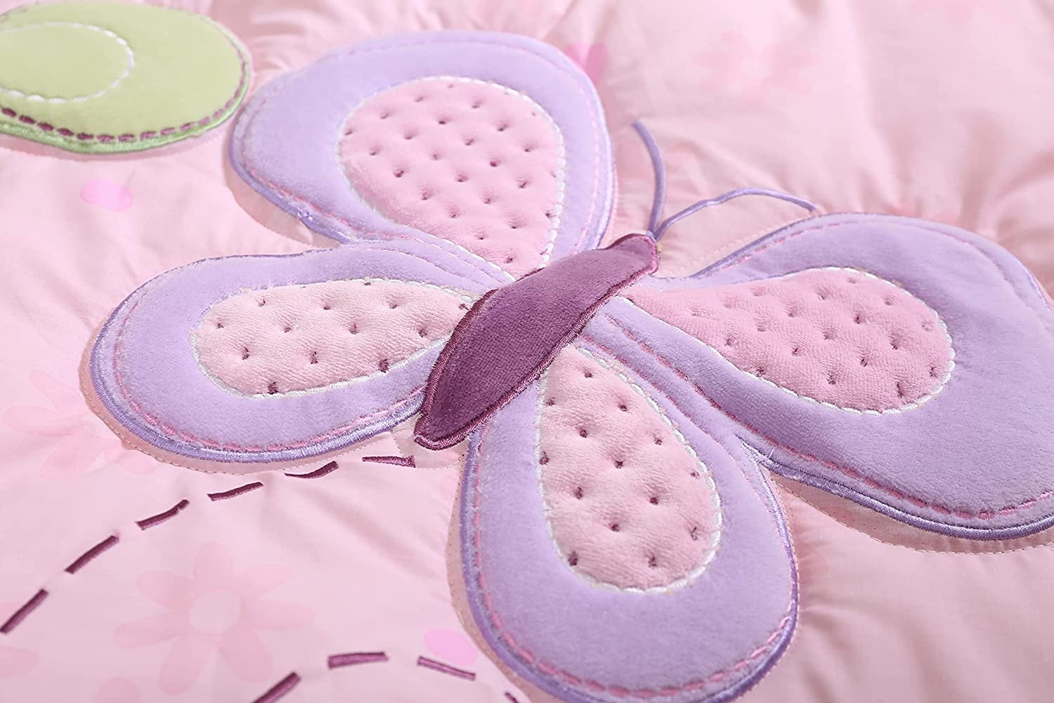 Sweet Baba 4 Piece Cotton Butterfly Crib Bedding Set,Pink Crib Set for Baby Girls,Microfiber Printed Nursery Set Including Comforter/Skirt/2 Crib Sheets