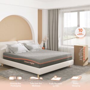 Do you love the contour of memory foam but also want a cool sleep Then Sweetnight 10 inch memory foam mattress is a good option for you. This memory foam mattress adopts gel infused technique, so that the sleepers don’t need to worry about sleeping hot at night. Sweetnight 10 inch gel memory foam mattress is made up of comfort foam, gel memory foam and high density foam. This 10″ queen size mattress can contour your body shape and provide you a great support. If you sleep with partner, this 10 inch memory foam mattress provides motion isolation so that it can reduce the disturbance from your partner. Coming with flippable design, Sweetnight 10 inch memory foam queen mattress is suitable for most of sleepers. Besides, the top side of mattress has soft feeling at the mattress head and medium-firm feel at the tail. Our mattress chooses CertiPUR-US certified foam and OEKO-TEX certified fabric, which is safe and healthy for adult, teen and child. This 10 inch queen mattress has a cover that is skin-friendly and anti-pilling. For convenient shipping, Sweetnight uses mattress in a box technique for packaging and shipping to your door. Sweetnight 10″ gel memory foam mattress comes with 10 years warranty. Tips: Please allow the 10 inch memory foam mattresses to fully inflate about 72 hours.