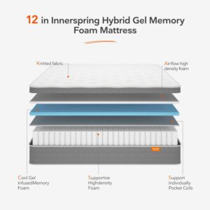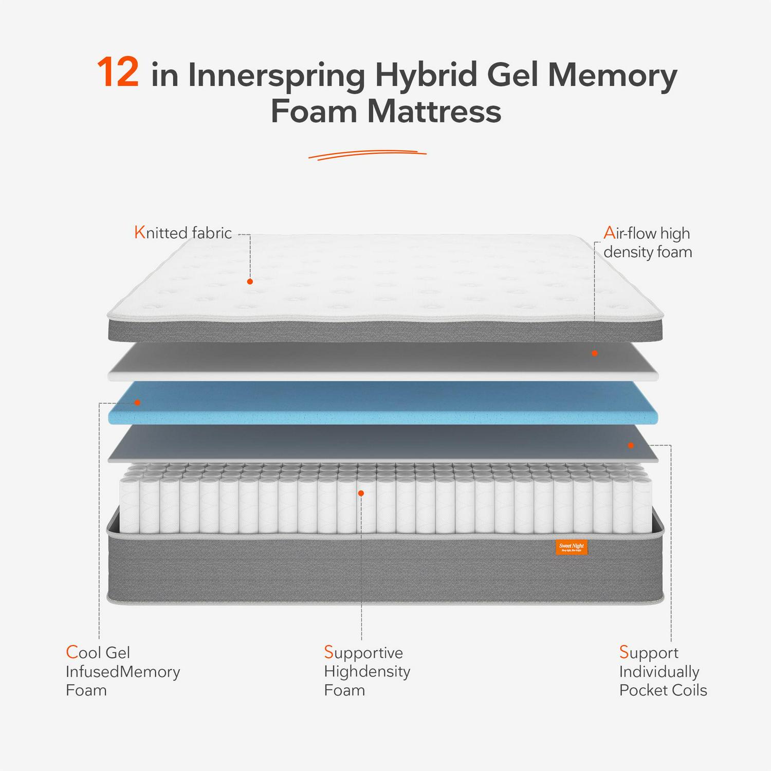 Sweetnight 12 inch Gel Memory Foam Hybrid Mattress with Medium Firm Pillow Top, King Mattresses