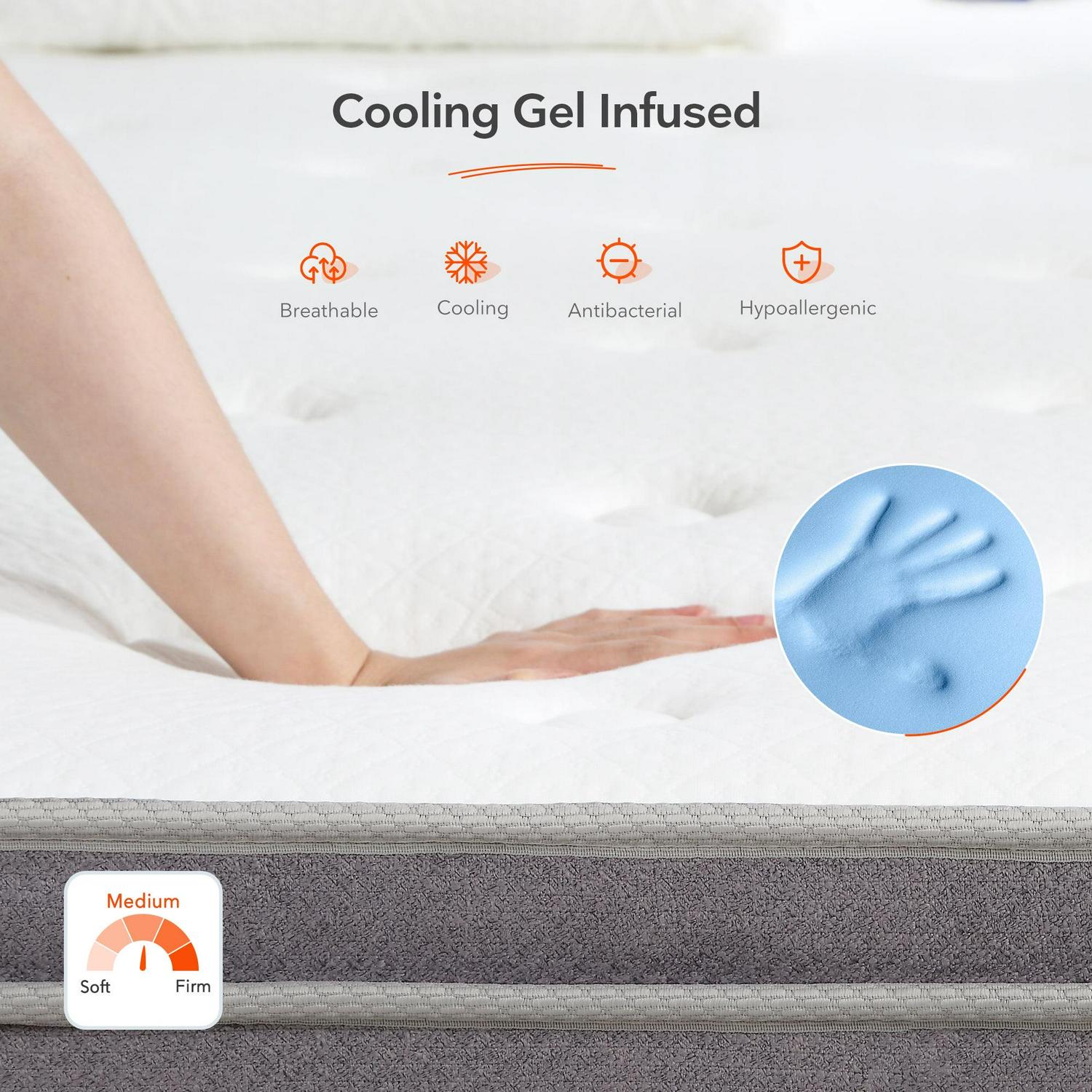 - Material: Gel Memory Foam, Individually Pocketed Spring