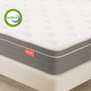 If you are someone who is tired, has poor excellent sleep, or has sleep issues, then Sweetnight hybrid mattress could be just what you need in order to sleep better. Don t let lack of sleep affect the things that you want to enjoy in life, get a Sweetnight 12 inch gel memory foam hybrid mattress and start enjoying better nights of sleep. The thick foam layers and individually pocketed coils of a hybrid mattress provide better motion isolation that offers you a quiet sleeping when you parner is tossing and turning. Sweetnight king size pilllow top mattress provides more pressure relief than a standard innerspring mattress. Sweetnight hybrid mattresses’ edge support is especially important if you re looking for a mattress for arthritis or another condition that limits a person s movements. Medium firm mattresses are suitable for stomach/side/back sleepers, which gives you many sleeping choices. Knitted fabric cover of king mattress certified by OEKO-TEX is hypoallergenic & friendly-skin. Sweetnight matress can use on many foundations, including a box spring, a platform bed, an adjustable bed frame, slatted base, or even on the floor. King mattress in a box is compressed and rolled, which is easy for setup and delivery. Sweetnight hybrid mattresses you purchase will be covered under a 10 year limited warranty/30-night sleep trial.