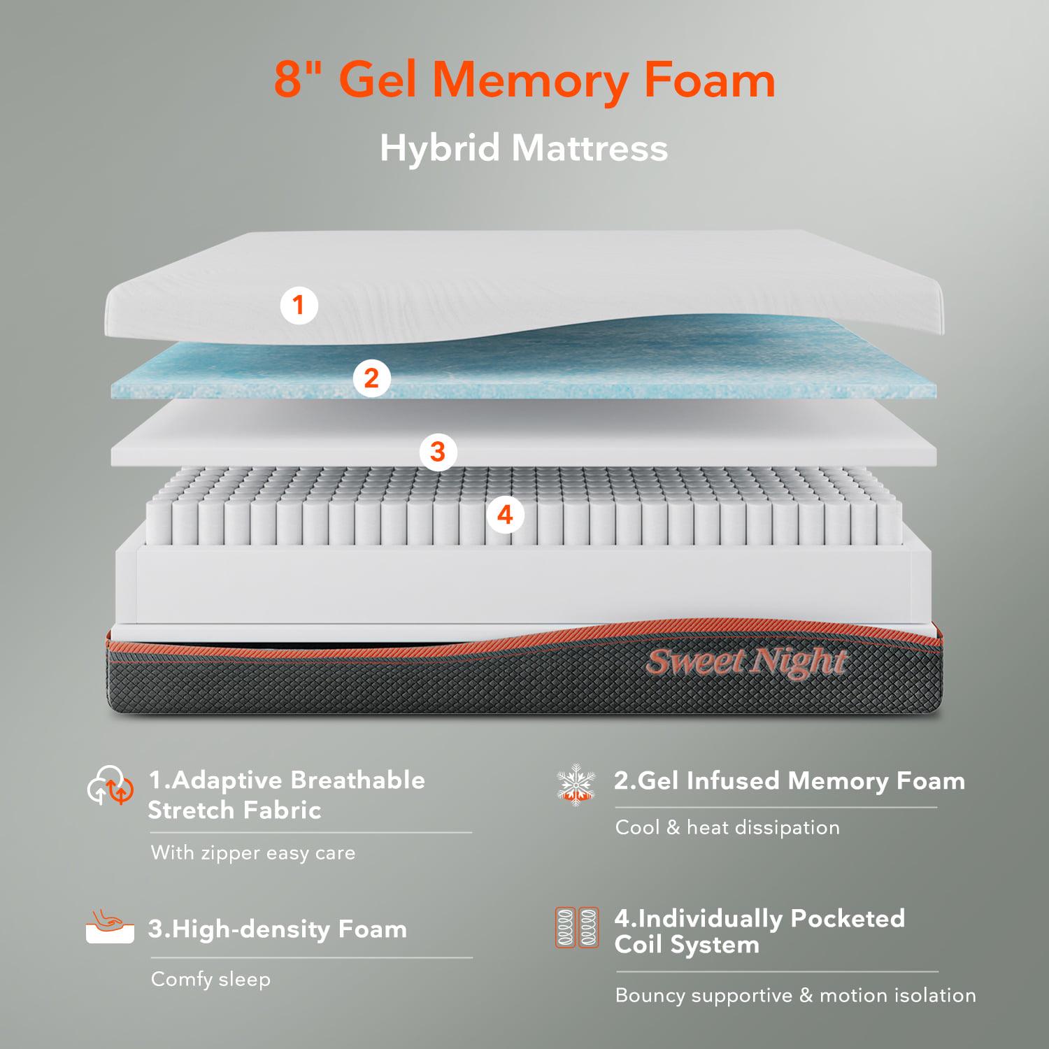 Sweetnight 8 inch Gel Memory Foam Pocket Spring Hybrid Mattress, Twin Mattress, Adult