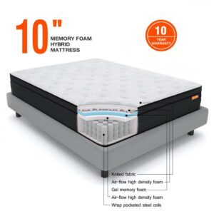 Sweetnight Twilight 10 Gel Memory Foam Mattress Hybrid Mattress, Queen Mattress