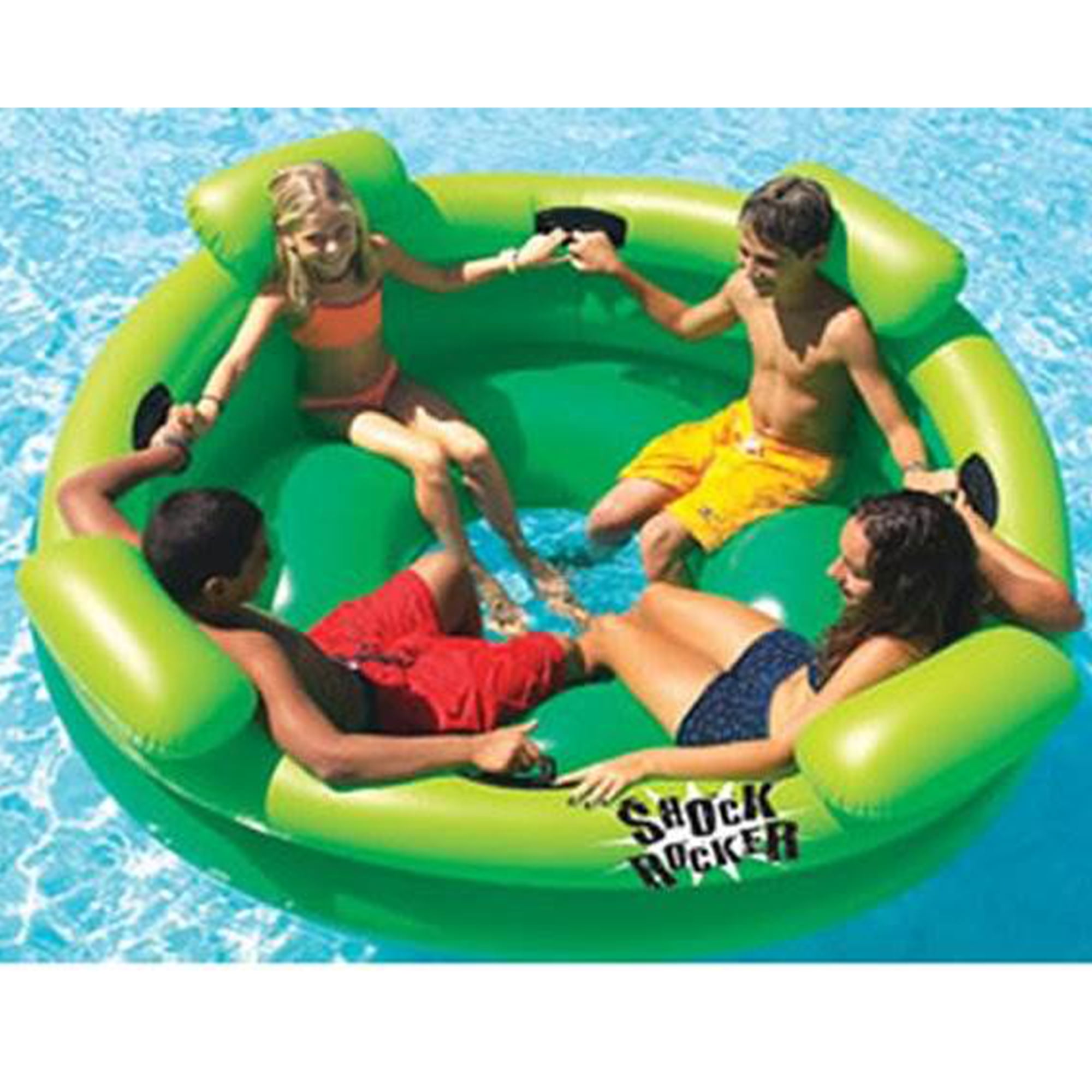 PERSONAL AMUSEMENT PARK: Swimline’s Inflatable Shock Rocker is designed to bring the amusement park to your pool. Hold onto the integrated grab handles dip your feet in the water and spin for loads of fun! FOR ALL AGES: With firm back and head rests this float doubles as a comfortable hangout lounge for the adults BRING IT ANYWHERE: Perfect for the pool lake or riding down the river with friends and family!