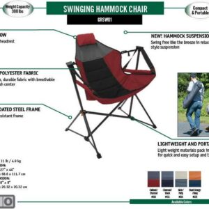 - HAMMOCK CHAIR: Camp chair designed to offer hammock style seating