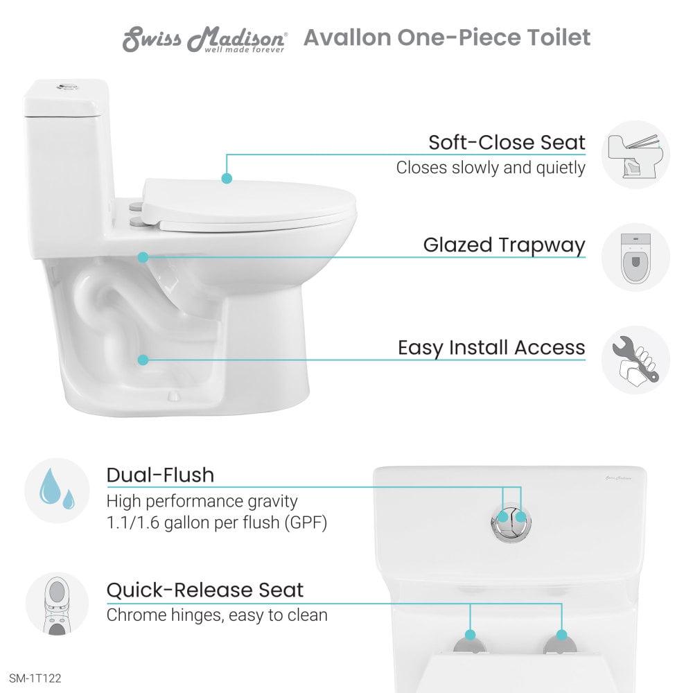 Swiss Madison Avallon One-Piece Elongated Ceramic Dual Flush-Toilet 1.1/1.6 Gpf