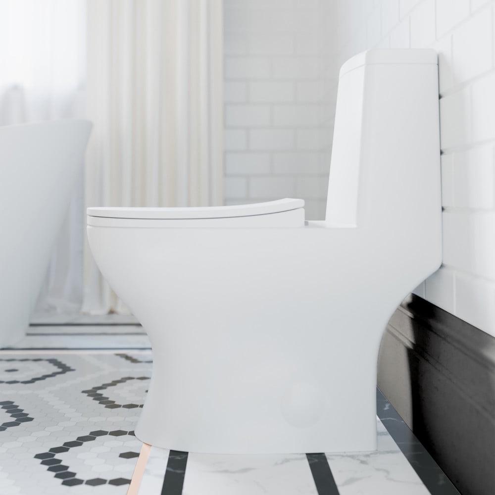 The Ivy One-Piece Dual-Flush Elongated Toilet is a stylish modern addition to any bathroom. The Ivy’s sophisticated and elegant design includes a 10 Rough-In, allowing for convenient space-saving and flexibility. Its dual-flush function conserves water without compromising on power, while our Vortex flush technology uses powerful dual nozzles to keep your bowl cleaner than standard rim holes. Built with a chrome-plated top flush actuator, this elongated bowl toilet will enhance any bathroom setting.