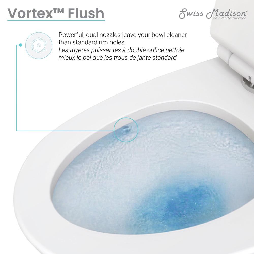 – Dual-flush with high-performance Vortex 1.1 / 1.6 gallons per flush (GPF)