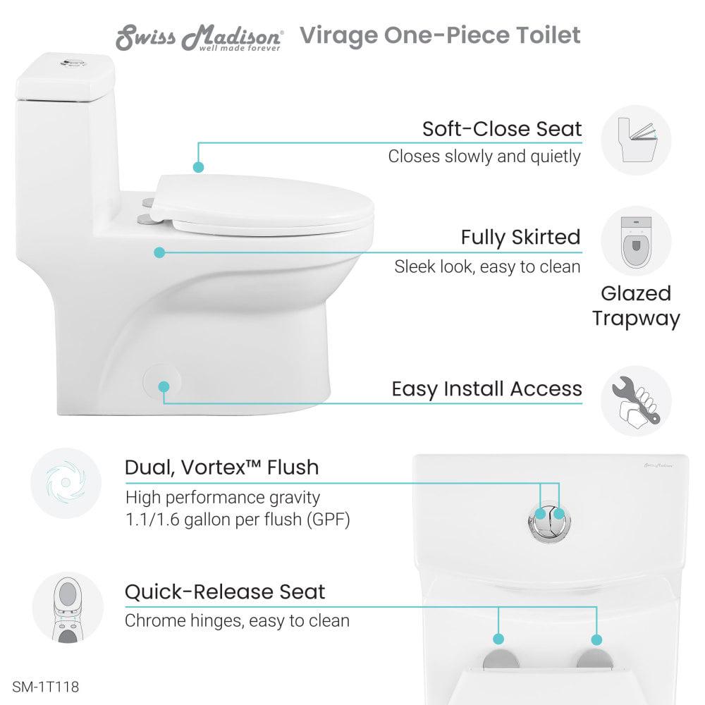 Swiss Madison Virage One-Piece Elongated Toilet Vortex Dual-Flush 1.1/1.6 gpf