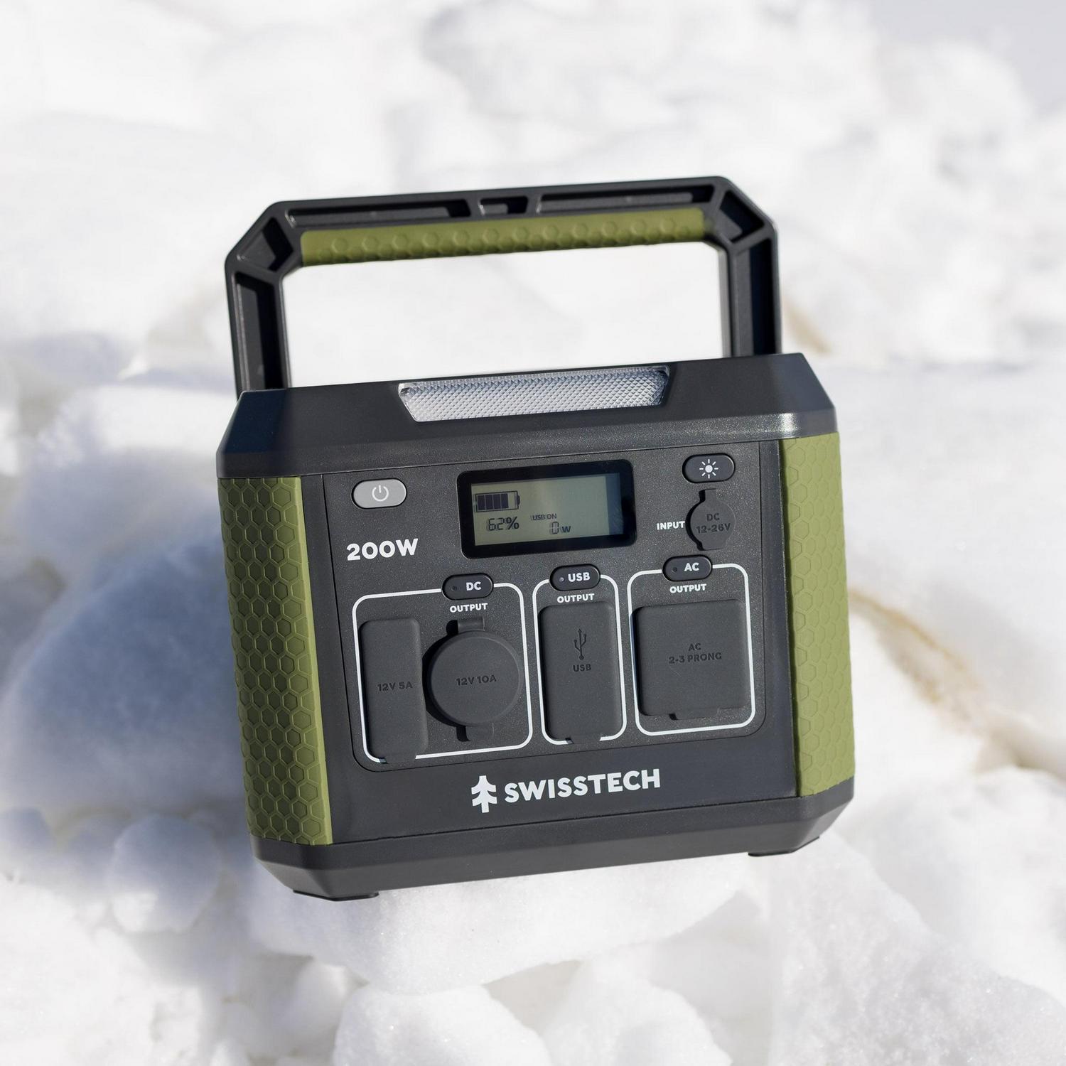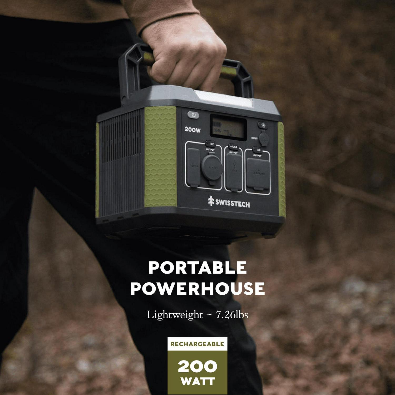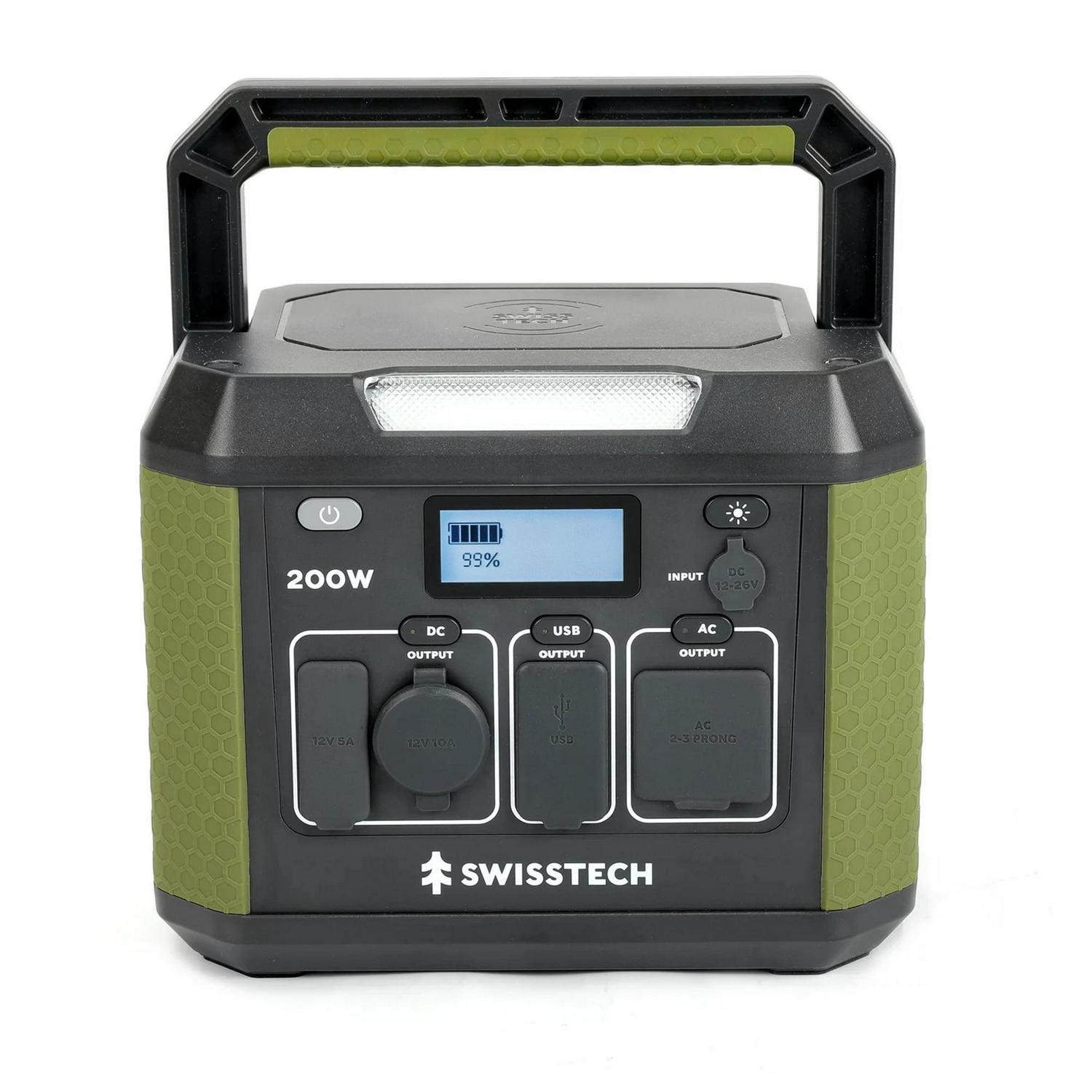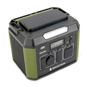 Swiss Tech 200W Portable Power Station, 193Wh, Solar Generator for Camping and Travel Emergency
