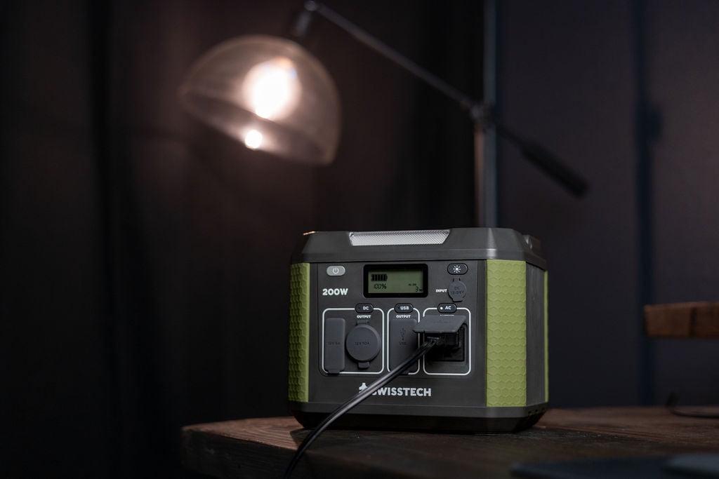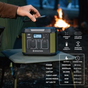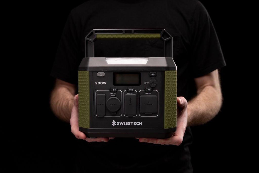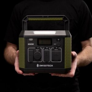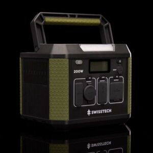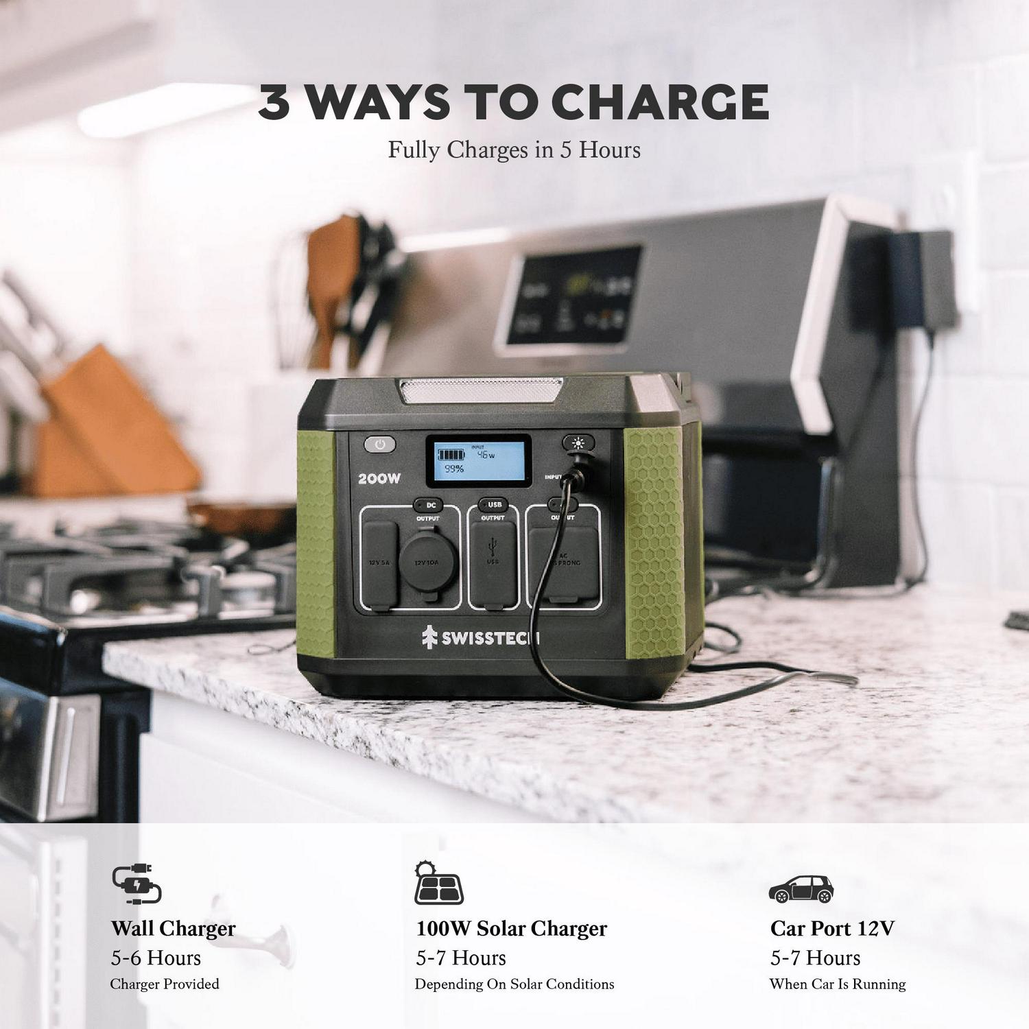 Swiss Tech 200W Portable Power Station, 193Wh, Solar Generator for Camping and Travel Emergency