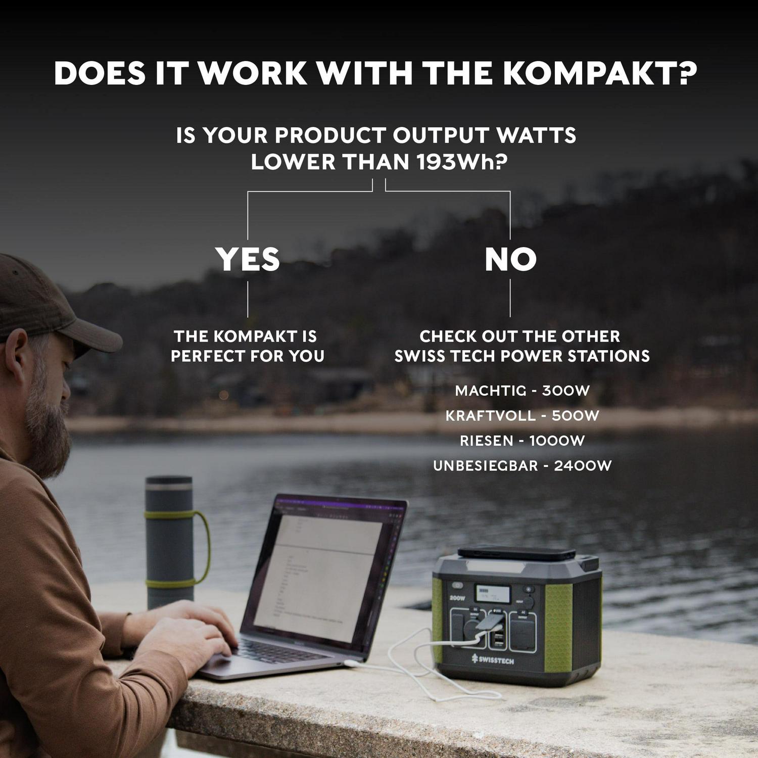The Swiss Tech 200W Portable Wireless Power Station is built for long-lasting adventures. Whether you are camping, over-landing, tailgating, or boating, this heavy-duty and compact power station provides reliable power that lets you take your adventure anywhere. This power station features a wireless pad for convenient phone charging. Output capabilities include (1) Wireless, (2) DC 12V/5A, (1) 12V/10A DC Auxiliary, (2) USBA, (2) USBC, and (1) AC 2 and 3 Prong. Keep the power station charged with the provided DC, Car Port, or Solar cords. Don’t forget to look at Swiss Tech’s Solar Panel range for Solar charging on-the-go. Always stay charged and never run out of power with the Swiss Tech Portable Wireless Power Station.