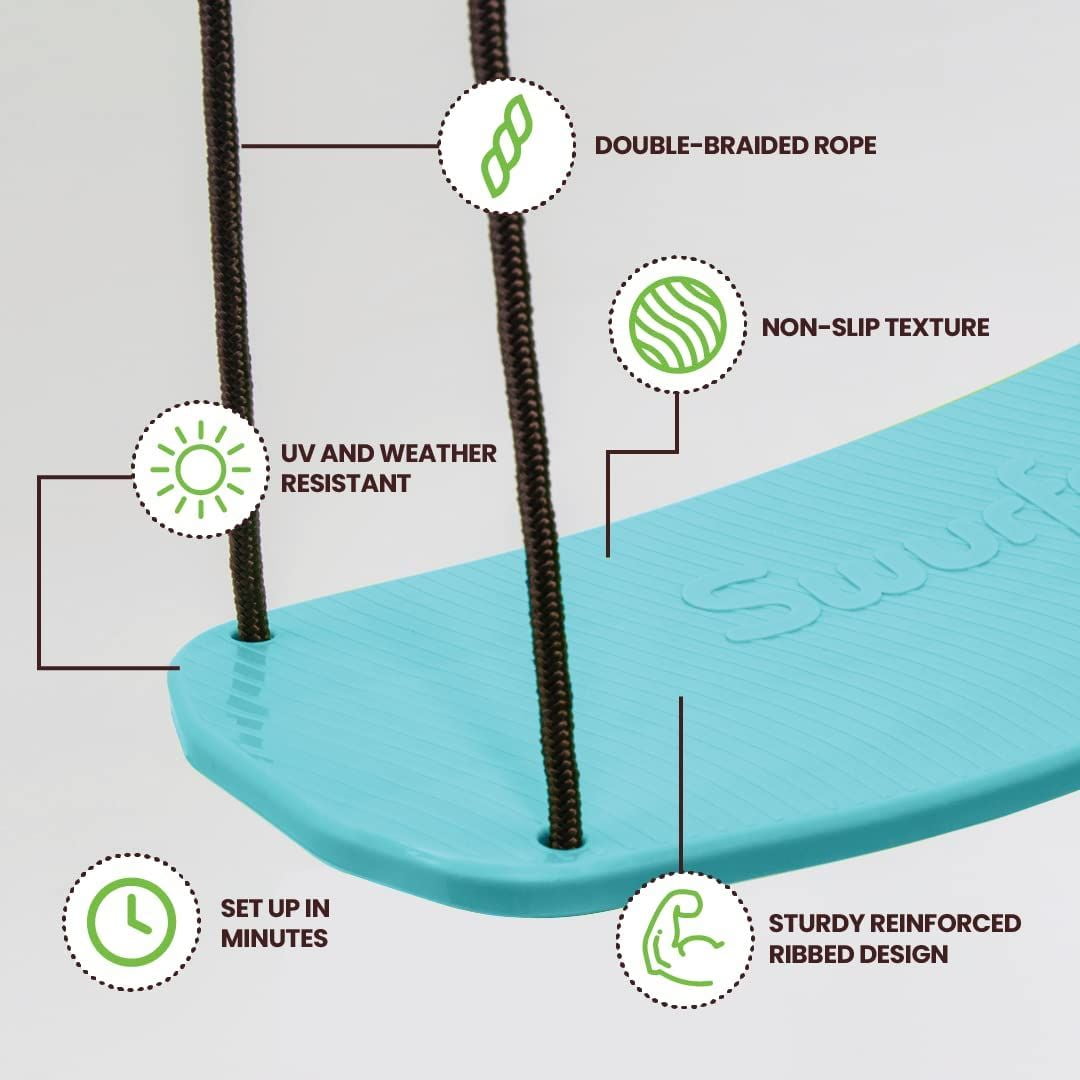 Swurfer Kick Stand Up Outdoor Tree Swing for Kids Holds Up to 200 lbs Ages 6 Years and Up: Stand-up outdoor kick swing for kids allows for dynamic swinging experience Can be used as either a tree swing or add-on to outdoor playset Easy to set up and move to new locations 24” standing swing board made of durable plastic UV and mildew resistant ropes and set of handles included For ages 6 years and up, holds up to 200 lbs 1-year 100% satisfaction guarantee