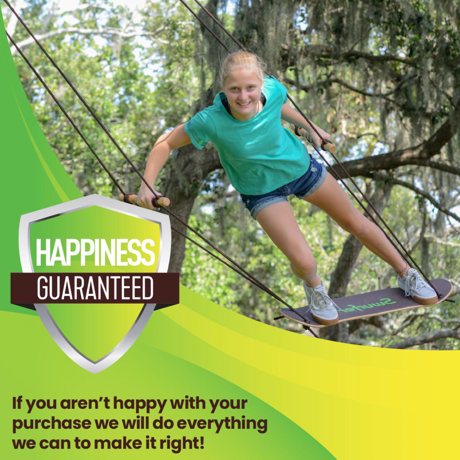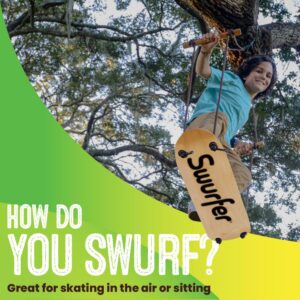 Skate the air with the original Swurfer TreeSkate! Unlike the Original Swurfer s curved deck design, the TreeSkate features a flat, tapered deck that encourages pumping your legs to generate huge amounts of momentum and swing way up into the sky. The hand-crafted design features a standard 31-inch skateboard deck that comes in three eye-popping graphic varieties: the natural wood finish, Undawadda, and Waves. Grip tape ensures your feet stay locked in place at all times and provides the traction necessary to really put weight into your turns. A fun way to get a solid workout in, the TreeSkate requires heavy glute and thigh activation, while maintaining your balance and keeping your body centered between the handles is a great core workout. Everything needed for a fast setup is included, and the universal straps are rated for 6000 lbs and work with all Swurfer swings, so changing setup or adjusting hanging height takes just seconds. The straps fit around tree branches, jungle gyms, and backyard patios. Locking carabiners ensure the TreeSkate never falls and your kids are always safe. Trees are essential to many things in nature clean air, clean water, and a clean climate. A healthy environment sustains the source of the wood for our Swurfer swings, nurtures the trees that our swings hang from, and supplies the shade that people enjoy on a hot summer day. Swurfer is dedicated to encouraging families and children to enjoy the gift of nature, and fostering sustainability of our natural resource is not only the smart thing to do but the right one. With this ideal in mind, Swurfer wood products are constructed using wood certified by the Forest Stewardship Council (FSC), a non-profit organization dedicated to promoting responsible forestry. We have furthered our dedication in sustaining this precious resource by joining the Arbor Day Foundation last year to publicly launch the Time for Trees initiative. This ambitious project aims to plant 100 million trees and inspire 5 million tree planters by 2022, the 150th anniversary of the founding of Arbor Day. We are proud that Swurfer is playing a role in this important large-scale effort. Swurfer believes that every day is Earth Day, and we stand by our commitment to helping develop a sustainable future in both practice and action.